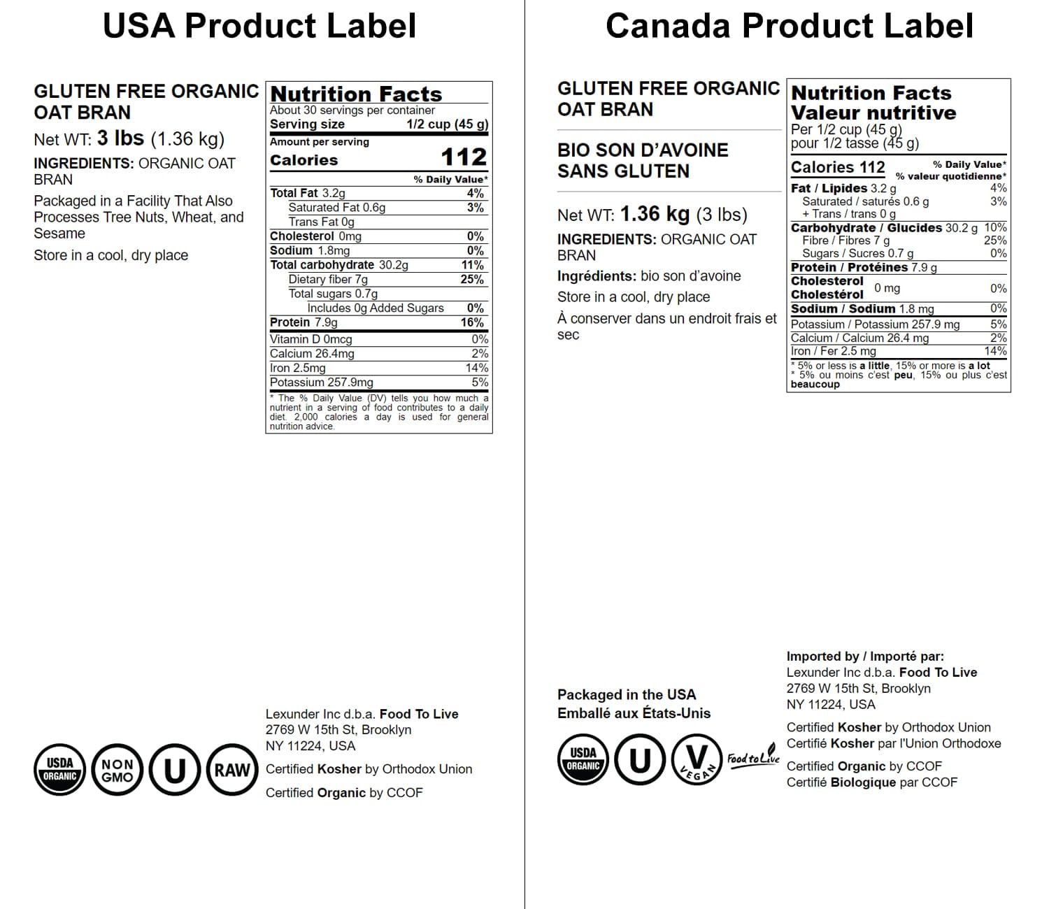 - Q: How can I incorporate oat bran into my diet? A: You can easily incorporate Food to Live Gluten Free Organic Oat Bran into your diet by using it in various ways. Enjoy it as a hot cereal for breakfast, blend it into smoothies for added fiber, or incorporate it into your baking recipes for muffins, breads, and energy bars. It can also be sprinkled over yogurt or oatmeal for added crunch.