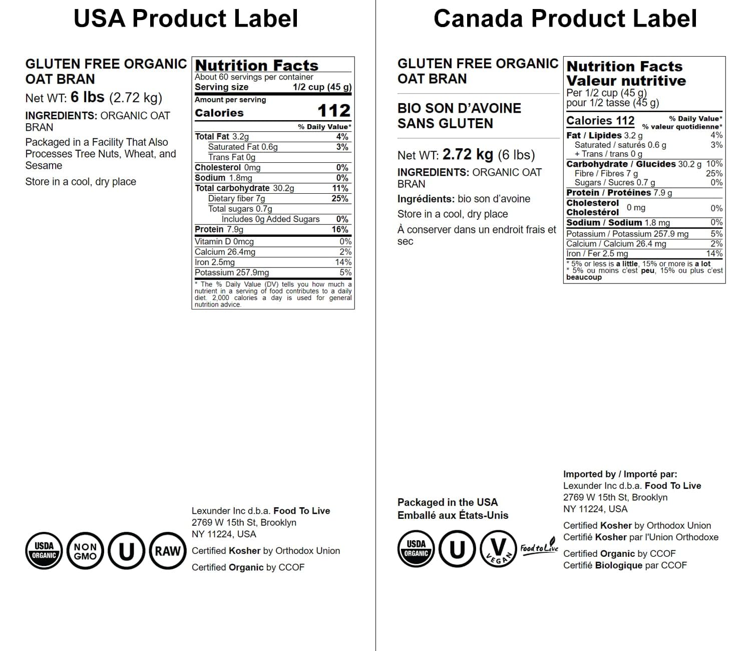 Gluten Free Organic Oat Bran - A Nutritional Powerhouse For Your Daily Wellness! Discover The Wholesome Benefits Of Gluten Free Organic Oat Bran, A Nutrient-Rich, High-Fiber Cereal Milled From Premium, High-Protein Organic Oats. Perfect For Anyone Following Gluten-Free, Vegan, Diets, This Oat Bran Is Non-Gmo, 100% Raw, Unprocessed, And Kosher, Offering The Purest Form Of Nutrition To Fuel Your Day. Whether You'Re Making Porridge, Adding It To Smoothies, Or Enhancing Your Baked Goods, This Oat Bran Is A Versatile, Must-Have Ingredient In Your Pantry. Ways To Use Gluten Free Organic Oat Bran: Hot Cereal: Enjoy A Warm, Creamy Oat Bran Porridge For Breakfast. Smoothies: Blend Into Your Favorite Smoothies For A Fiber Boost. Baking: Add To Muffins, Breads, Pancakes, Or Energy Bars For Extra Nutrition. Topping: Sprinkle Over Yogurt Or Oatmeal Bowls For Added Crunch And Nutrients. Storage Tips To Maintain Freshness, Store Your Gluten Free Organic Oat Bran In An Airtight Container In A Cool, Dry Place. You Can Refrigerate Or Freeze It To Extend Its Shelf Life Up To 2 Years.