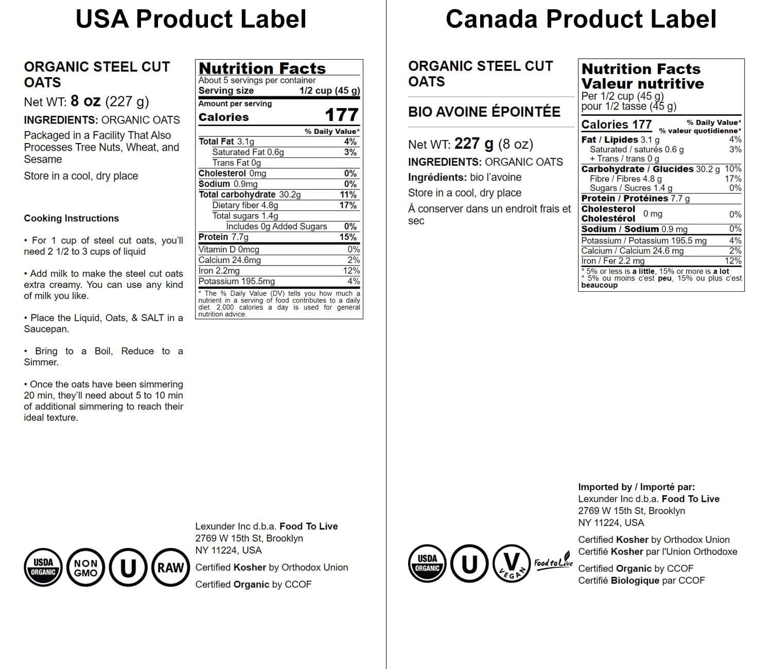 Q: Where do these Organic Steel Cut Oats come from?A: Food to Live Organic Steel Cut Oats are sourced from the USA and are certified organic and non-GMO, ensuring a safe and high-quality product for your breakfast needs.