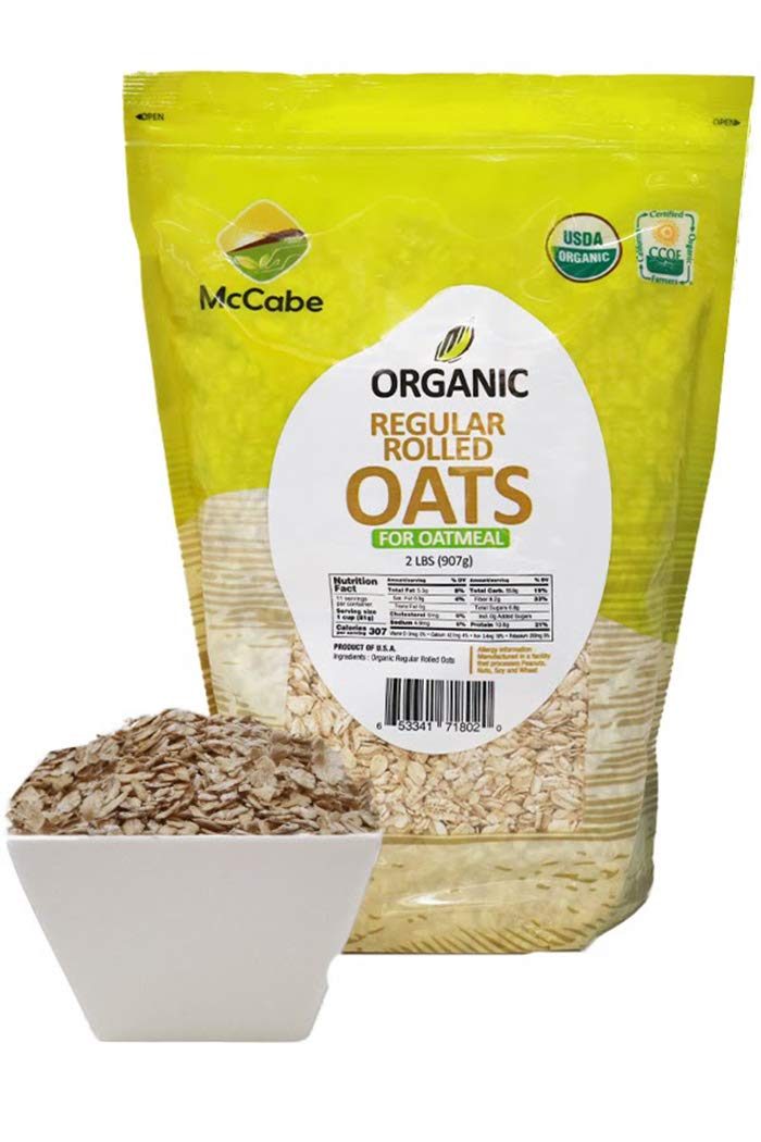 Q: What is the packaging size of McCabe Organic Regular Rolled Oats?A: McCabe Organic Regular Rolled Oats come in a 2-pound package, making it convenient for both individual and family use.