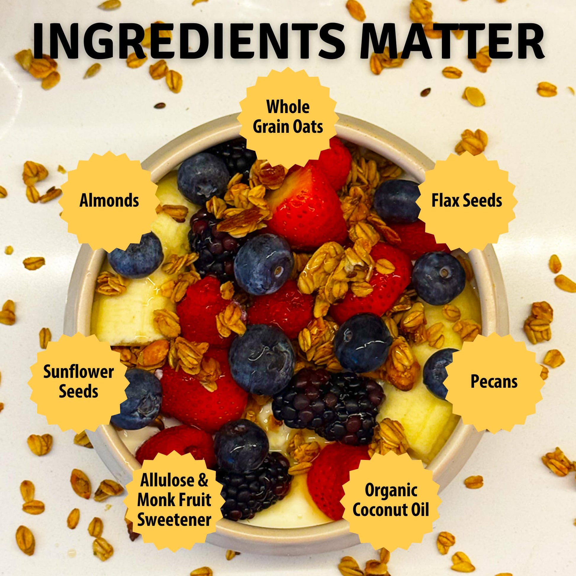 Warm, Cozy Perfection: Sugar-Free Cinnamon Pecan Granola With Real Cinnamon Enjoy The Sweet Life, Without The Sugar Embrace The Warmth Of Premium Real Cinnamon Paired With Buttery Pecans In This Comforting Sugar-Free Granola. We'Ve Combined The Finest Nuts And Seeds With 100% Whole Grain Oats To Create A Perfectly Spiced Breakfast Experience. Each Cluster Is Made With Organic Coconut Oil And Naturally Sweetened With Allulose And Monk Fruit, Delivering Authentic Flavor Without Sugar Alcohols Or Artificial Sweeteners. Our Cinnamon Pecan Granola Brings The Cozy Feeling Of Fresh-Baked Goods To Your Breakfast Bowl, While Keeping Your Healthy Lifestyle On Track. Your Mornings Never Tasted So Good