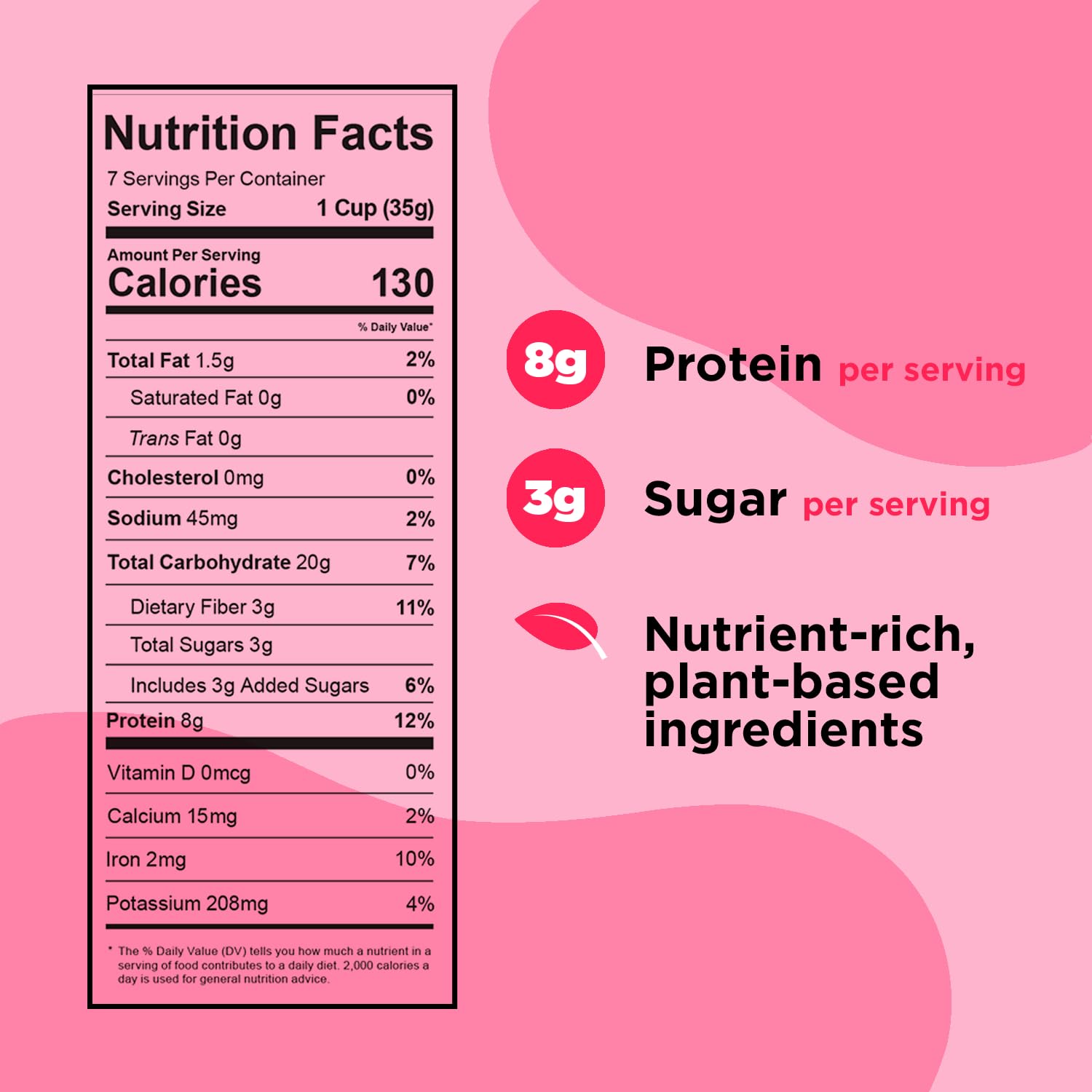 Q: How much protein does each serving of Three Wishes Cereal contain?A: Each serving of Three Wishes Strawberry Cereal contains 8g of protein, providing a healthy and satisfying breakfast option.