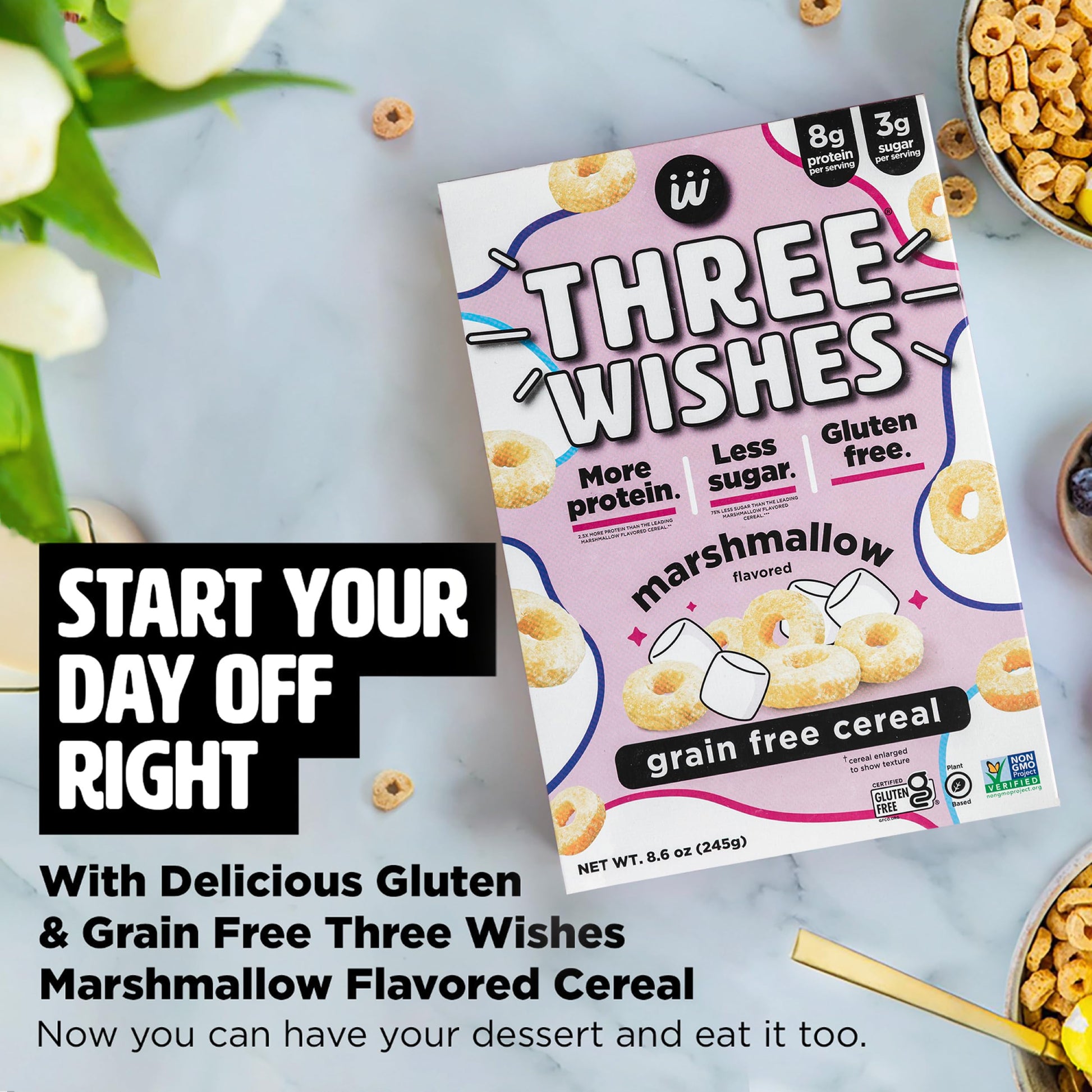 Three Wishes Marshmallow 4-Pack: Weve Recreated That Nostalgic Marshmallow Flavor In Our Perfectly Crunchy Cereal Os. With Just 3G Of Sugar And No Gluten Or Grains, Three Wishes Marshmallow Cereal Is Perfect For Fueling Your Inner Child (The One Who Would Eat Marshmallows For Breakfast But Knows Better Now). Four 8.6 Oz Boxes.