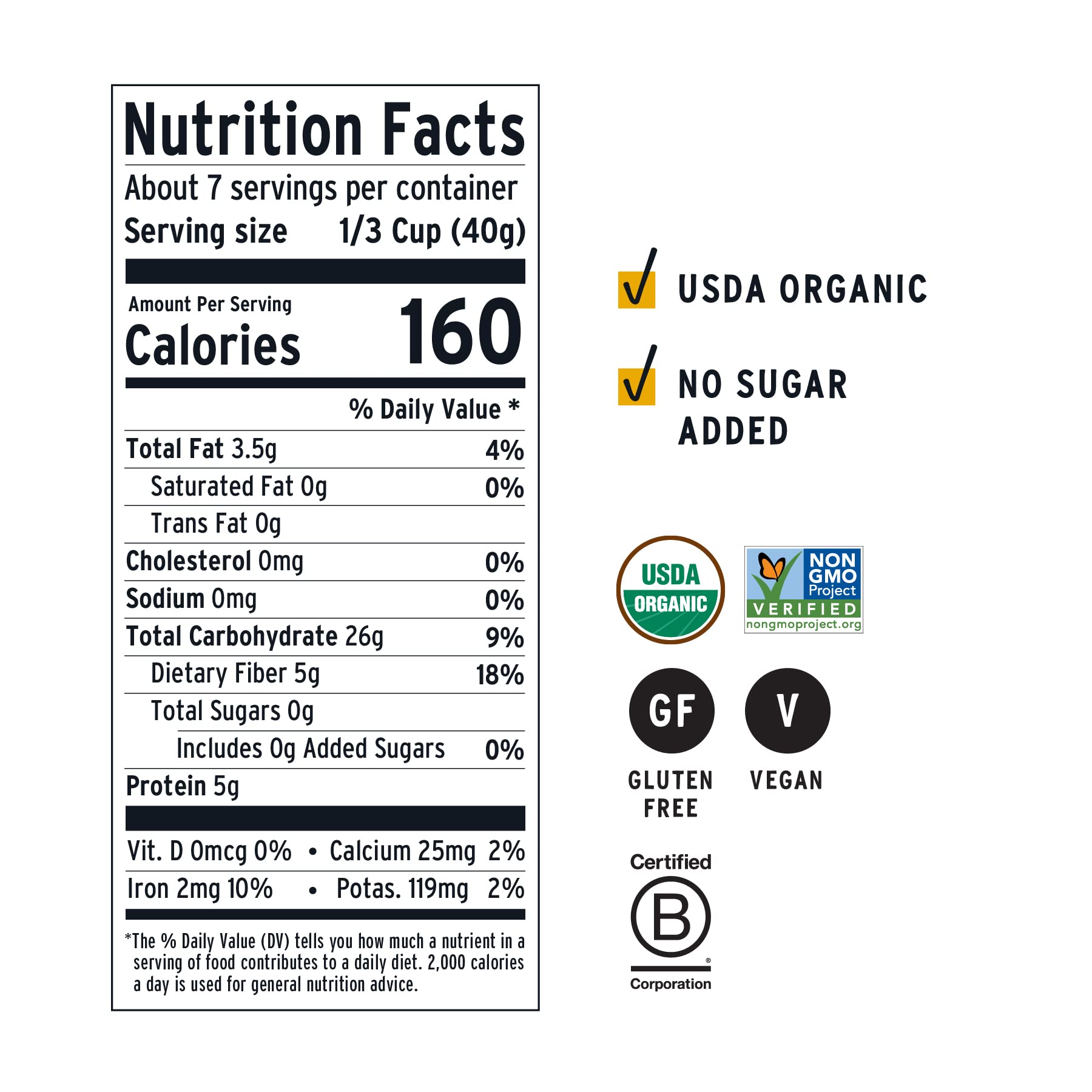 Q: Is this oatmeal certified organic?A: Yes, Purely Elizabeth Superfood Oatmeal is USDA certified organic, ensuring that it meets strict organic farming standards.