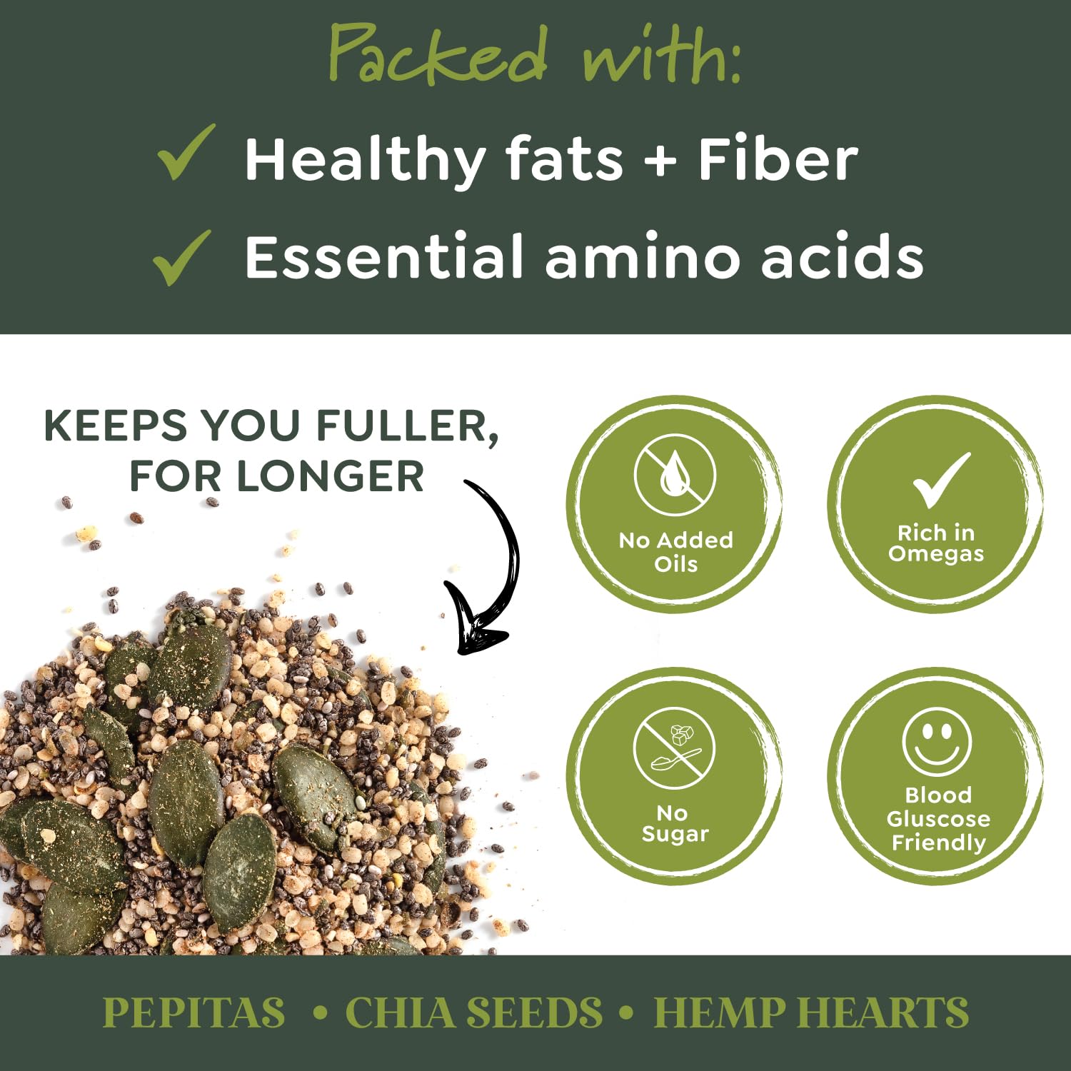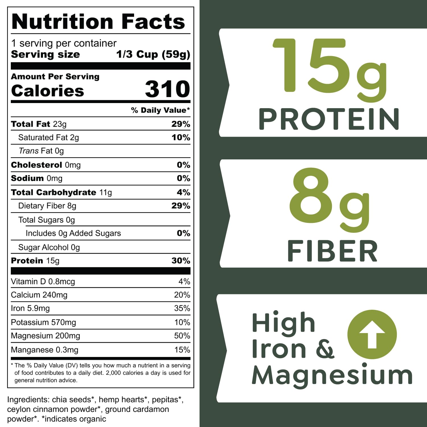 - Q: What are the main ingredients in Witzi's No Oats Oatmeal Alternative? A: Witzi's No Oats Oatmeal Alternative is made with a blend of nutrient-rich ingredients, including pumpkin seeds, chia seeds, and hemp hearts. These ingredients contribute to its high protein and fiber content while keeping it gluten-free and grain-free.