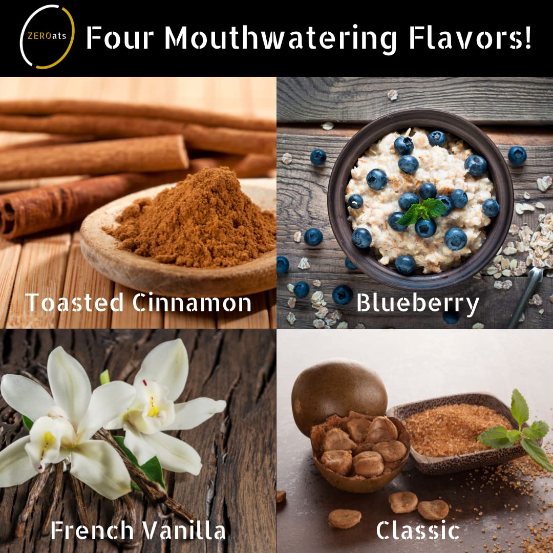 ZEROats Organic Oatmeal - Zero Sugar, Vegan Oats, Sweetened With Monk Fruit (Variety 12 Pack)