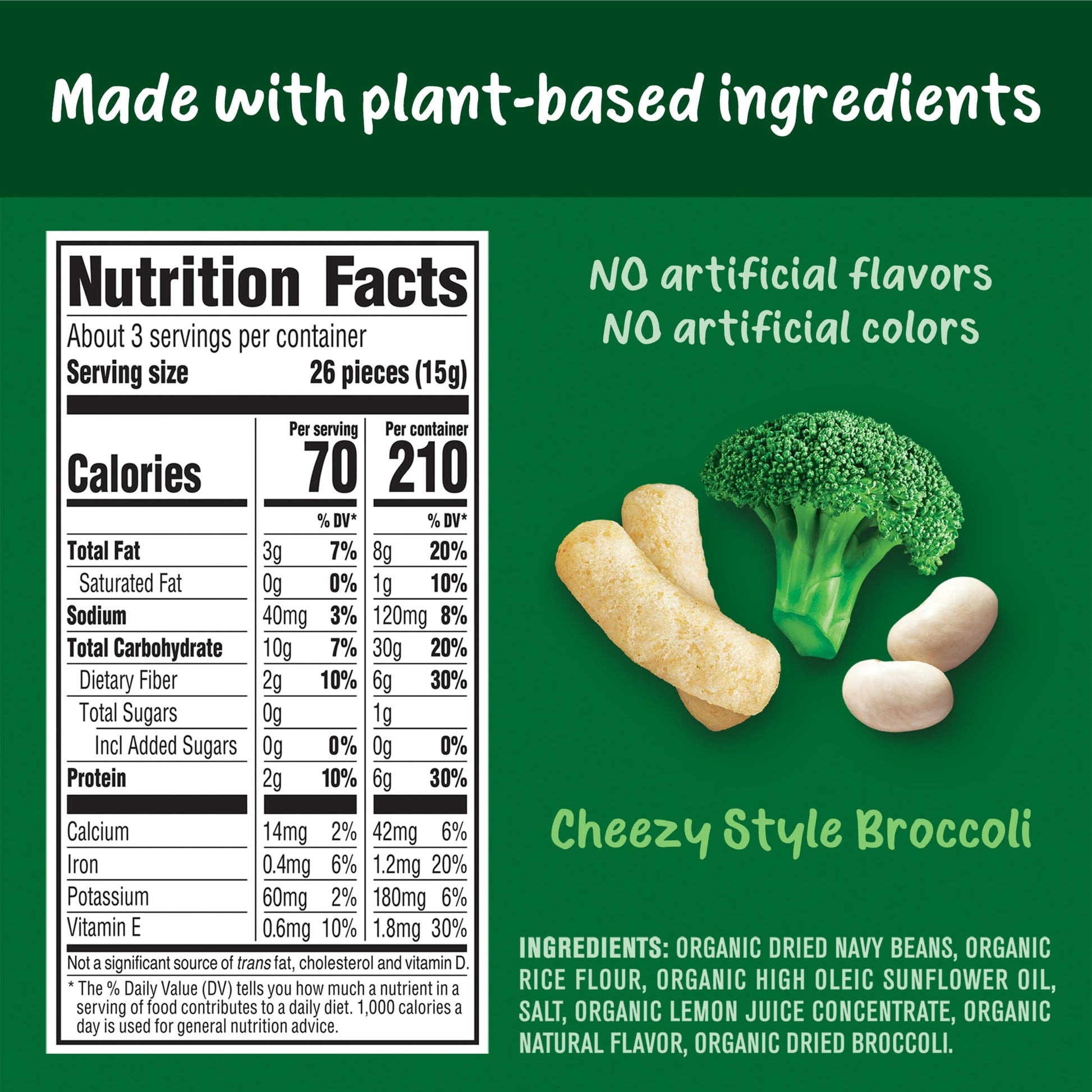 - Q: What are the main ingredients in Gerber Organic Lil Crunchies? A: Gerber Organic Lil Crunchies are made with nutritious plant-based ingredients, primarily using Navy Beans. They provide 2 grams of protein per serving and are free from artificial flavors, colors, and preservatives.