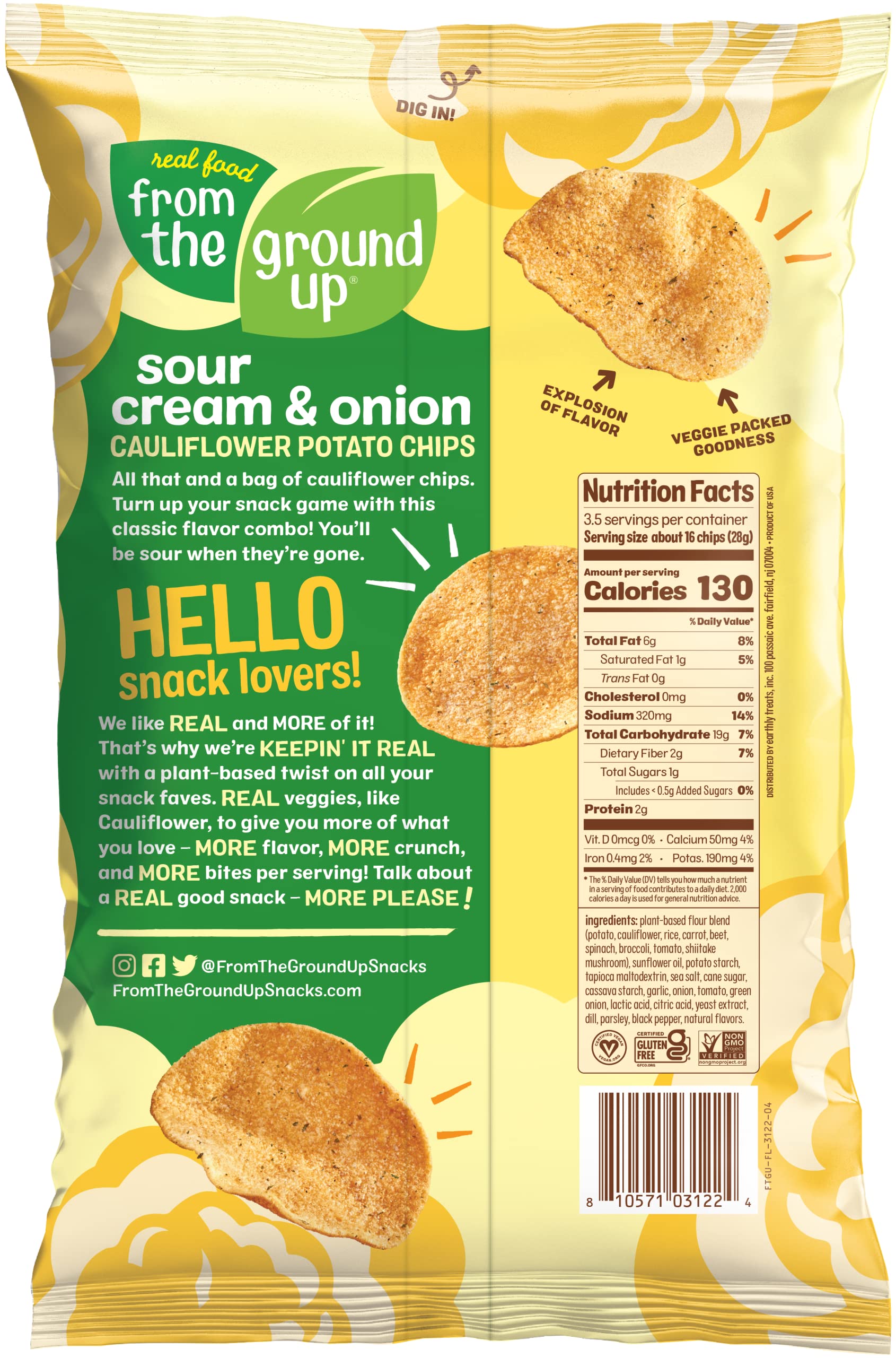 - Q: What are the main ingredients in Real Food From The Ground Up Cauliflower Chips? A: The main ingredients in Real Food From The Ground Up Cauliflower Chips include real cauliflower and other plant-based ingredients. The product is designed to be free from fillers, ensuring a focus on wholesome components.