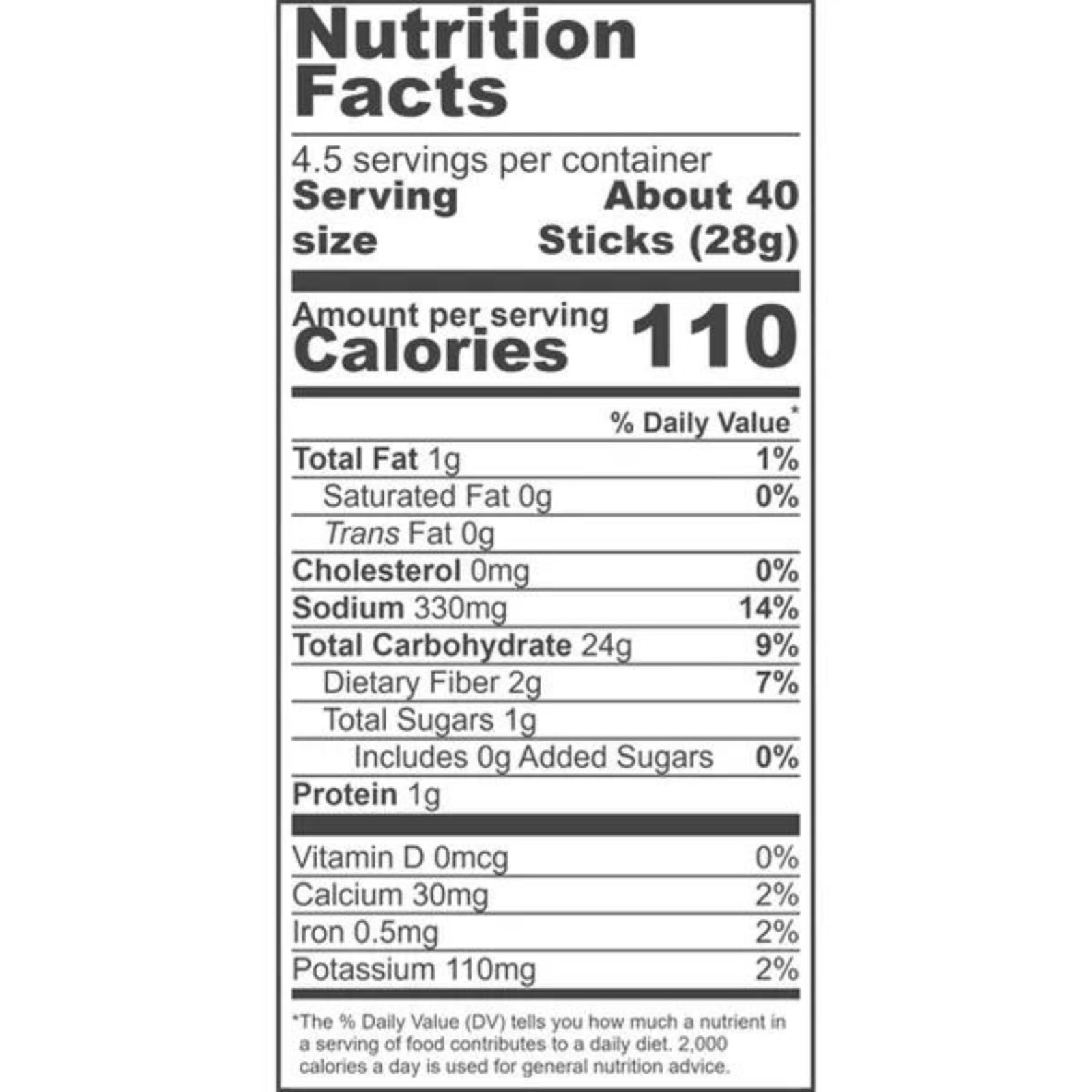 - Q: How many pretzel sticks are included in a pack? A: Each pack of Real Food From The Ground Up Original Cauliflower Pretzel Sticks contains four point five ounces of pretzel sticks, and this listing includes a pack of six.