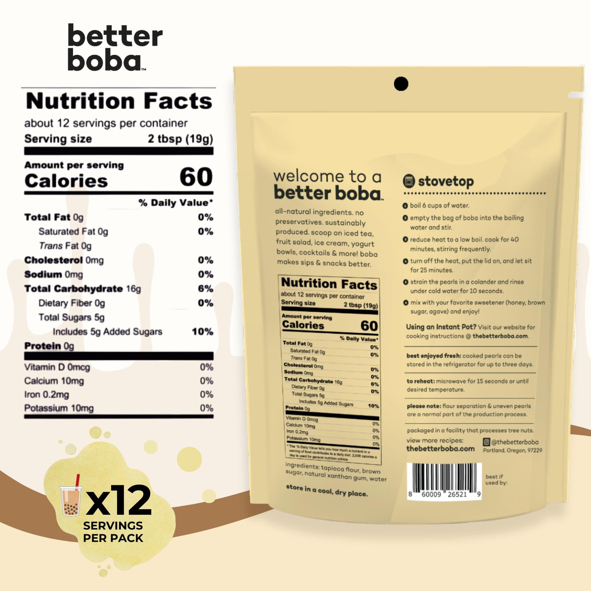 Better Boba All-Natural Classic Boba Pearls are perfect for bubble tea enthusiasts, dessert lovers, and anyone looking to enhance their beverage experience. Enjoy the flexibility of creating both classic and innovative drinks while adhering to dietary preferences. With their easy preparation and wholesome ingredients, these boba pearls are designed to satisfy cravings and elevate your culinary creativity.