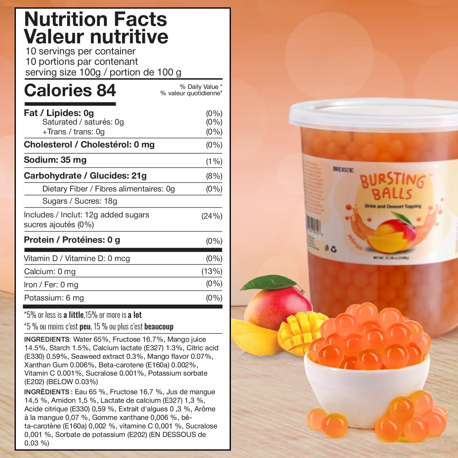 Ideal for anyone looking to enhance their culinary creations, our Bursting Balls are especially suitable for dessert enthusiasts, bubble tea fans, and anyone who enjoys unique snacks. Enjoy the playful texture and vibrant flavor that these mango flavored pearls bring, making every occasion a bit more special.