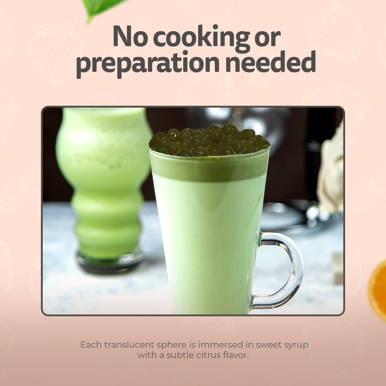 Q: Are these boba balls suitable for people with dietary restrictions?A: Yes, Fanale Matcha Agar Agar Boba Jelly Balls are made from plant-based ingredients and do not contain any harmful additives, making them a great option for those looking for a natural and healthier choice.