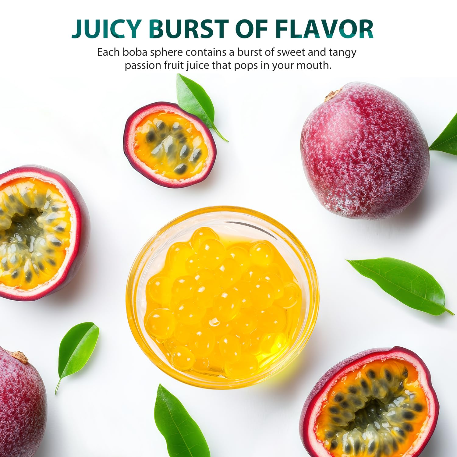 Key Features:- Tropical Flavor Explosion: Each boba pearl bursts with the tangy taste of passion fruit, offering a refreshing experience.