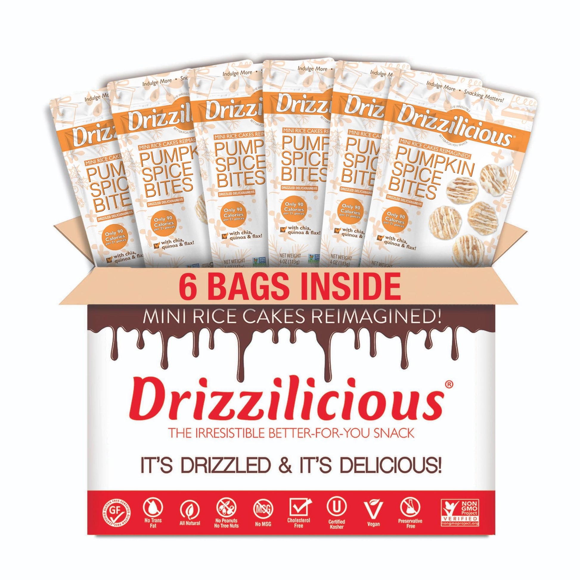Q: What flavors are available for Drizzilicious Mini Rice Cakes?A: In addition to Pumpkin Spice, Drizzilicious Mini Rice Cakes are available in other delicious flavors such as Birthday Cake, Cinnamon Swirl, Salted Caramel, and Smores.