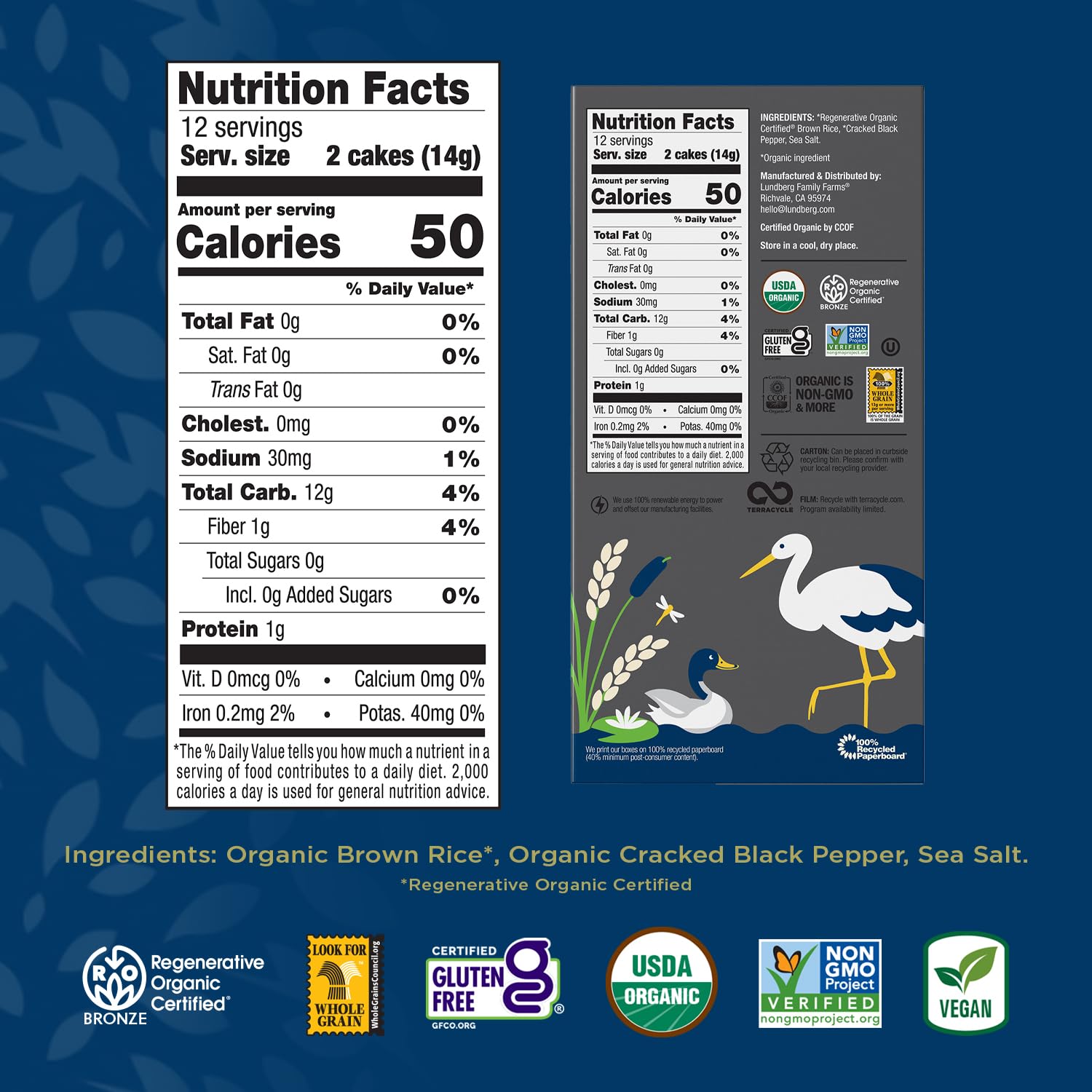 Lundberg Organic Thin Stackers, Cracked Black Pepper, 6 Oz (Pack Of 6), Thin Rice Cakes, Gluten-Free, Vegan, Healthy Snacks