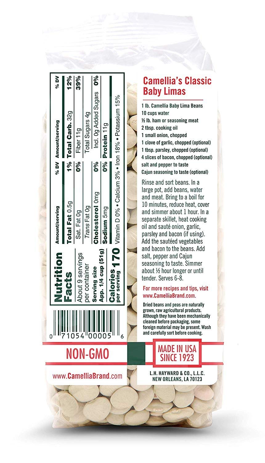 - Q: Are Camellia Dried Baby Lima Beans non-GMO? A: Yes, Camellia Dried Baby Lima Beans are non-GMO and are grown in the USA, ensuring you receive high-quality beans that meet strict quality standards.