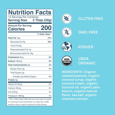 Cocomo Coconut Peanut Butter Spread, 16 oz - Organic Peanut Butter, Natural, Gluten Free, Vegan, High Protein, Healthy Snack, Sm