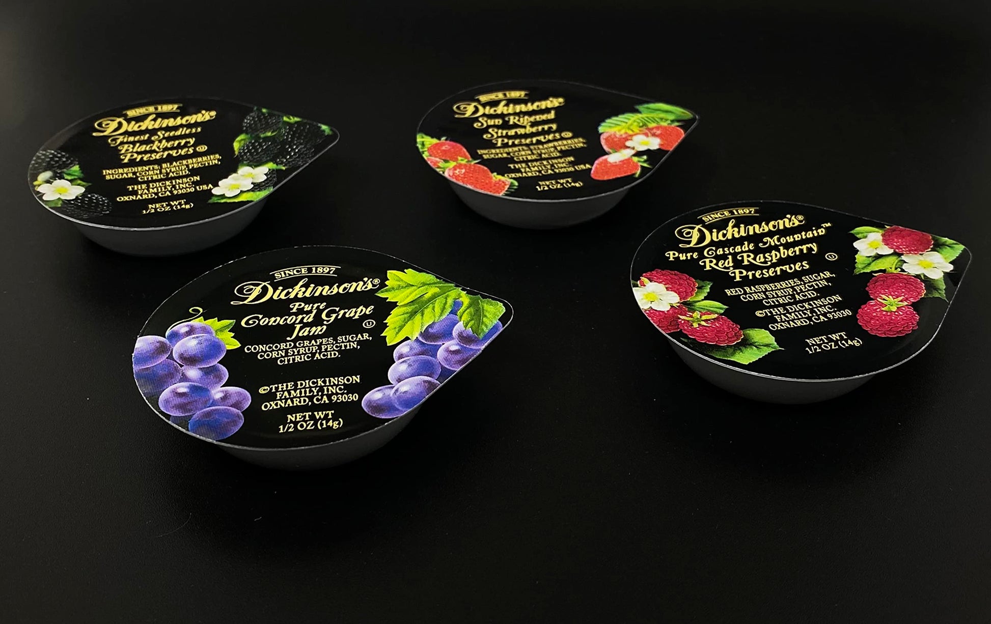 Dickinson'S Variety Pack 4 Flavors Of Jam And Preserves 80 Count, 20 Of Each Flavor - Single Serve Jam, Single Serve Preserves (0.5 Ounce Each)