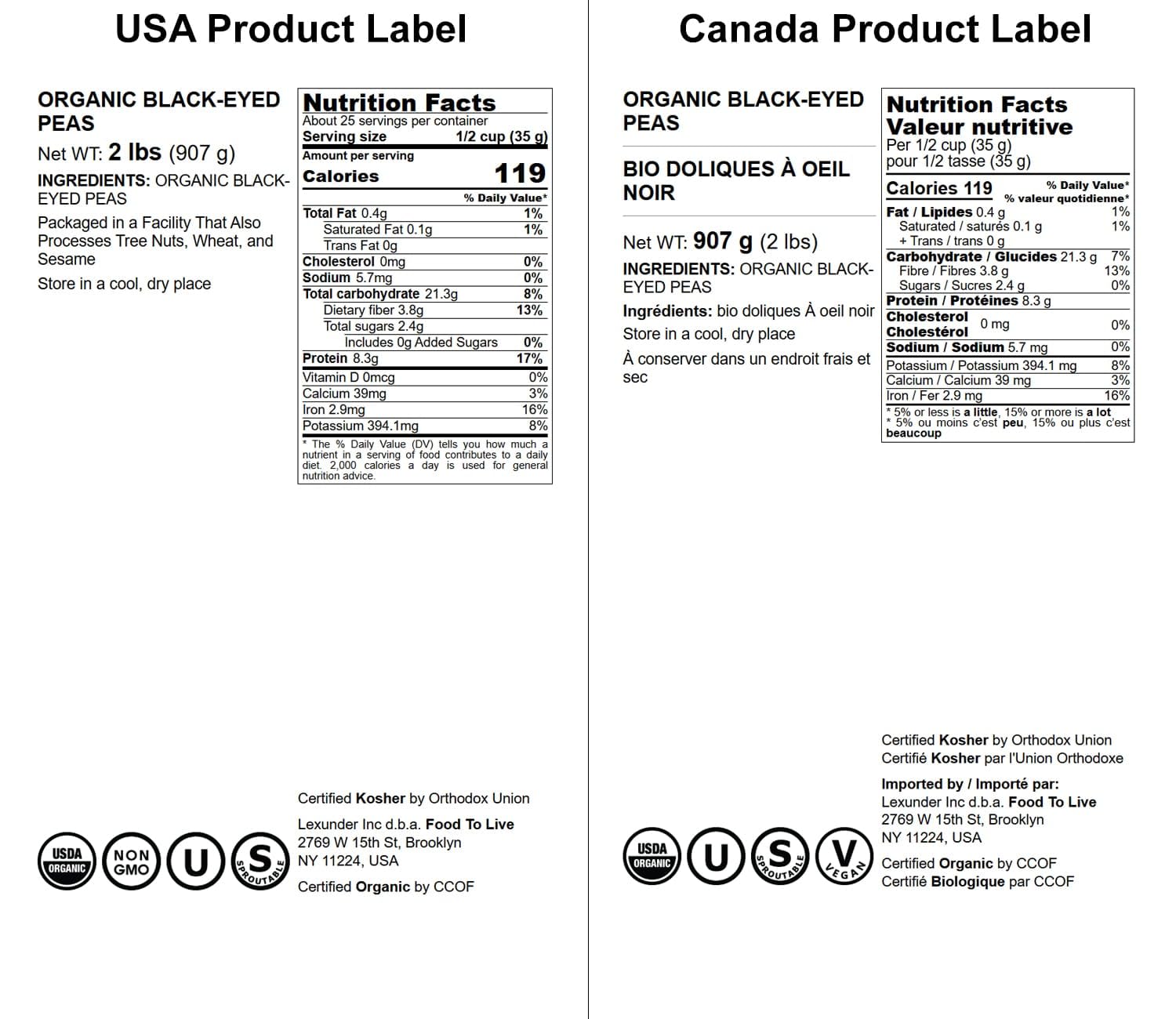 Q: Where are Food to Live Organic Black-Eyed Peas sourced from?A: Food to Live Organic Black-Eyed Peas are sourced from the USA, ensuring high quality and adherence to organic farming practices.