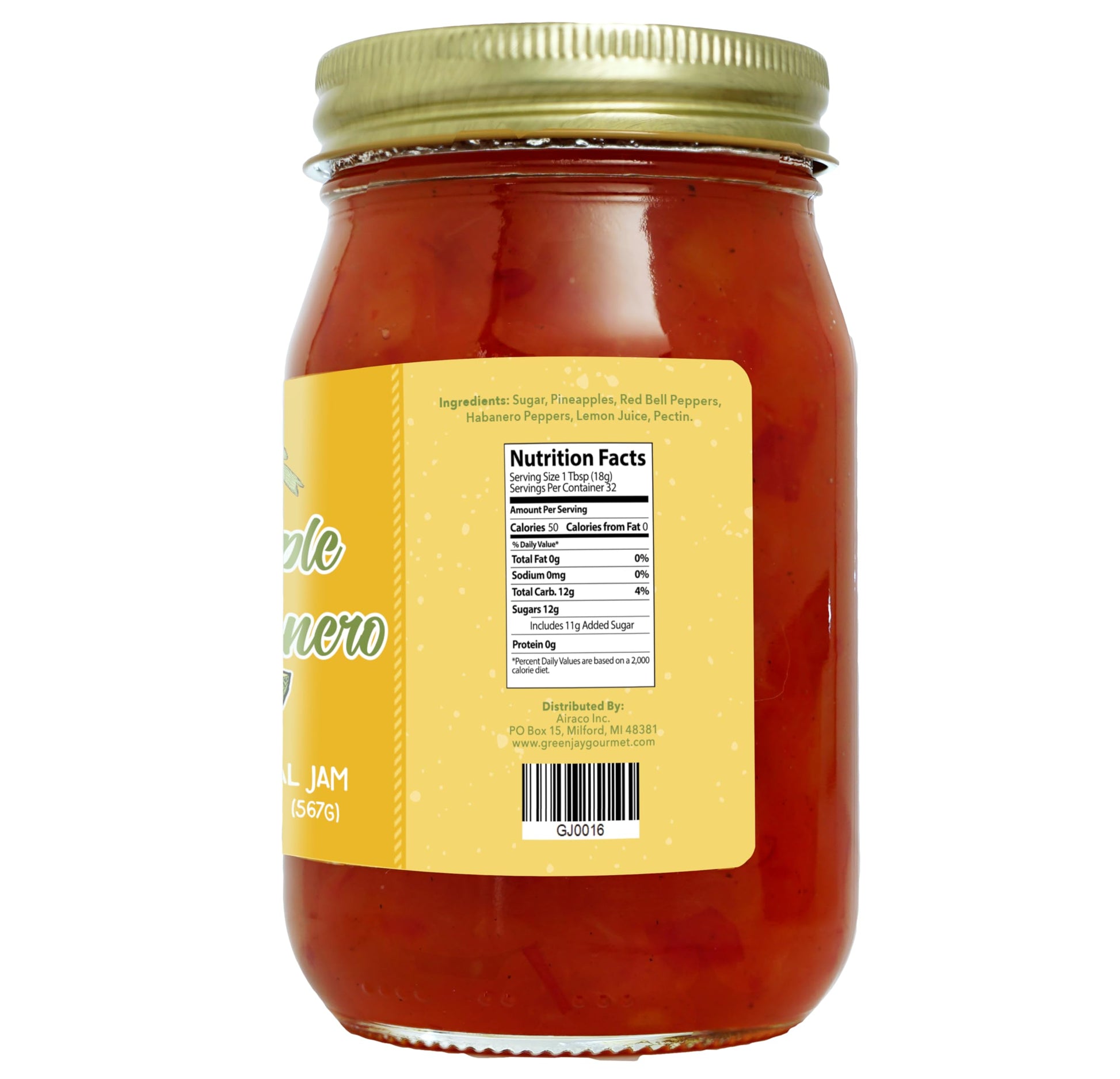 - Q: What are the main ingredients in Green Jay Gourmet Pineapple Habanero Jam? A: The main ingredients in Green Jay Gourmet Pineapple Habanero Jam are fresh pineapples, habanero peppers, lemon juice, and natural sweeteners. The jam is all-natural, vegan, and gluten-free, containing no preservatives or corn syrup.