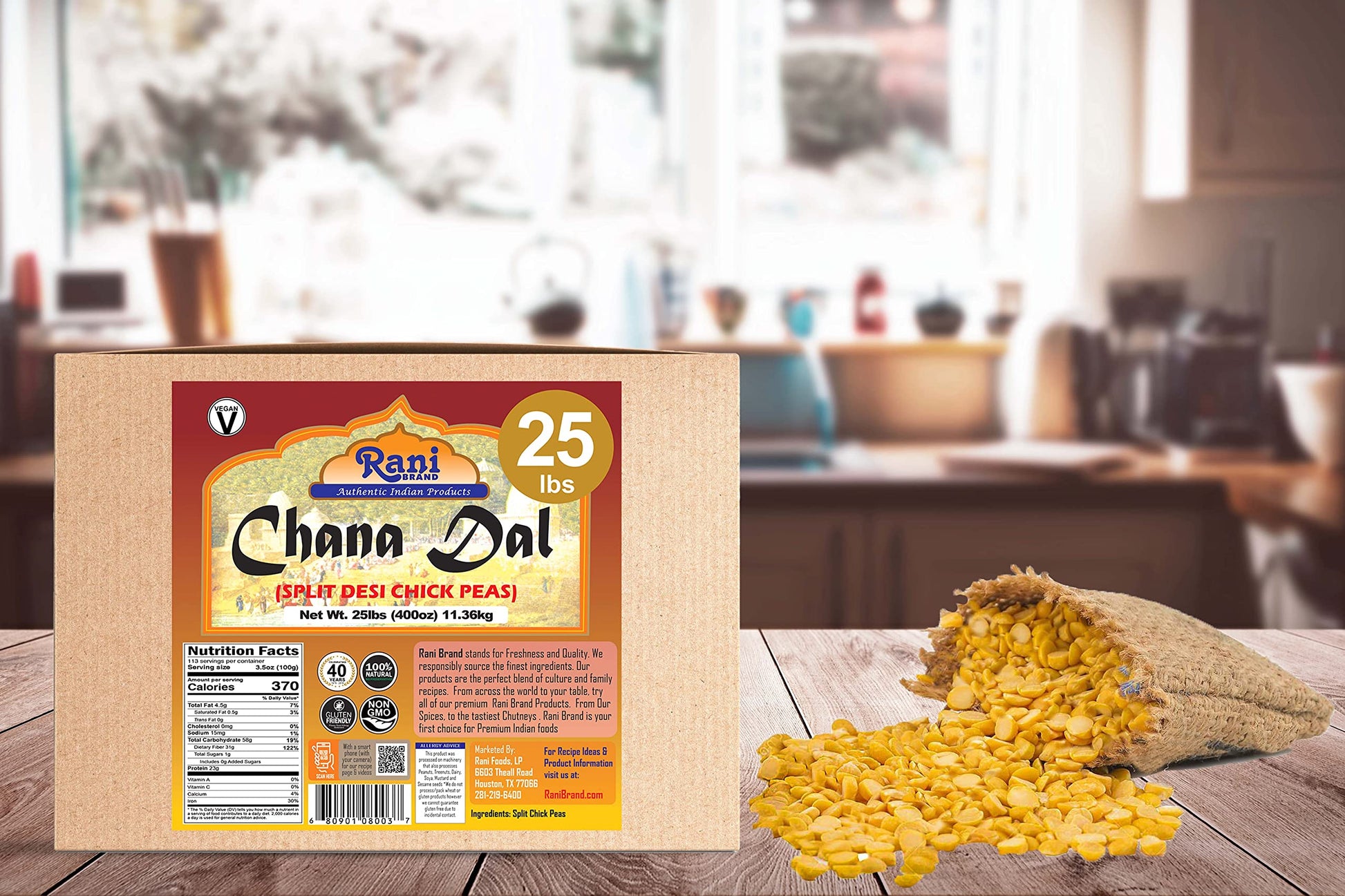 Rani Chana Dal (Split Desi Chickpeas without skin) 400oz (25lbs) 11.36kg Bulk Box ~ All Natural | Gluten Friendly | NON-GMO | Ko