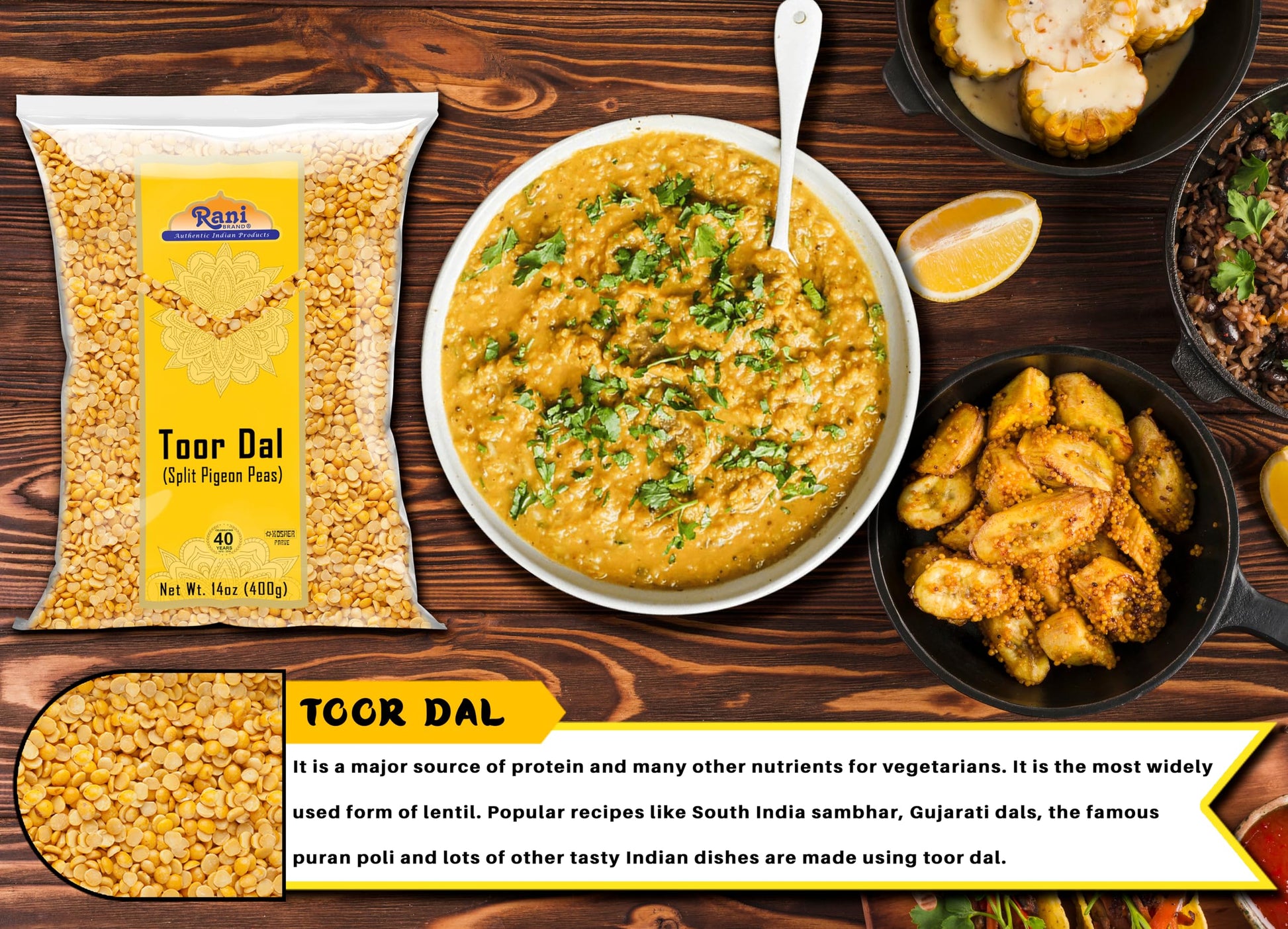 Q: Where is Rani Toor Dal sourced from?A: Rani Toor Dal is of Indian origin, where lentils are a staple in many cuisines. The product is sourced and packaged by Rani, a USA-based company with over 40 years of experience in selling spices.