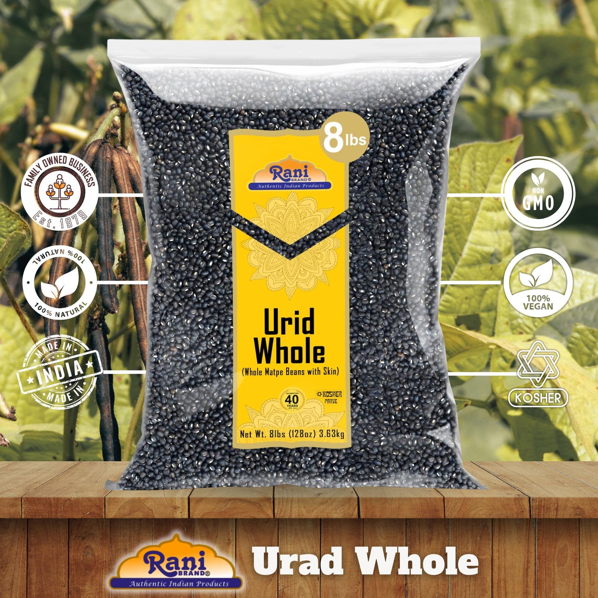 Rani Urid/Urad Whole Black (Matpe Beans with Skin) Indian Lentils 128oz (8lbs) 3.63kg Bulk ~ All Natural | Gluten Friendly | Non