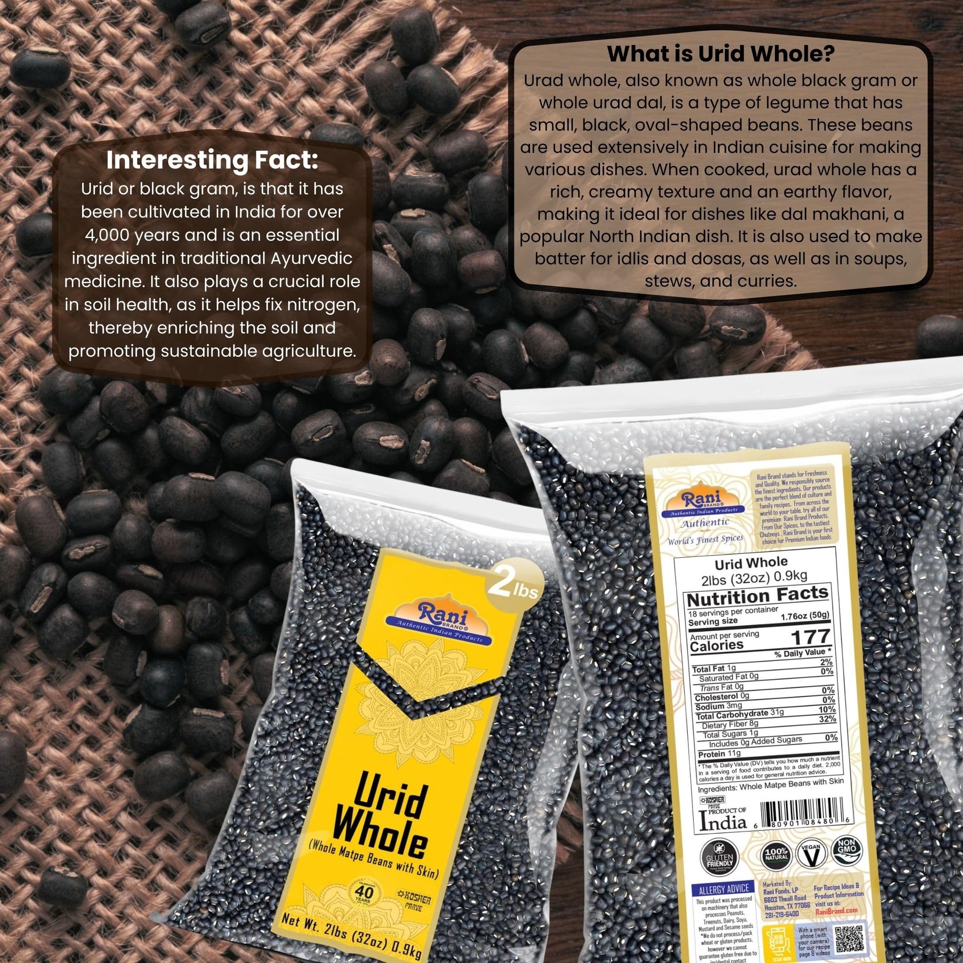Rani Urid/Urad Whole Black (Matpe Beans with Skin) Indian Lentils 32oz (2lbs) 908g ~ All Natural | Gluten Friendly | Non-GMO | K