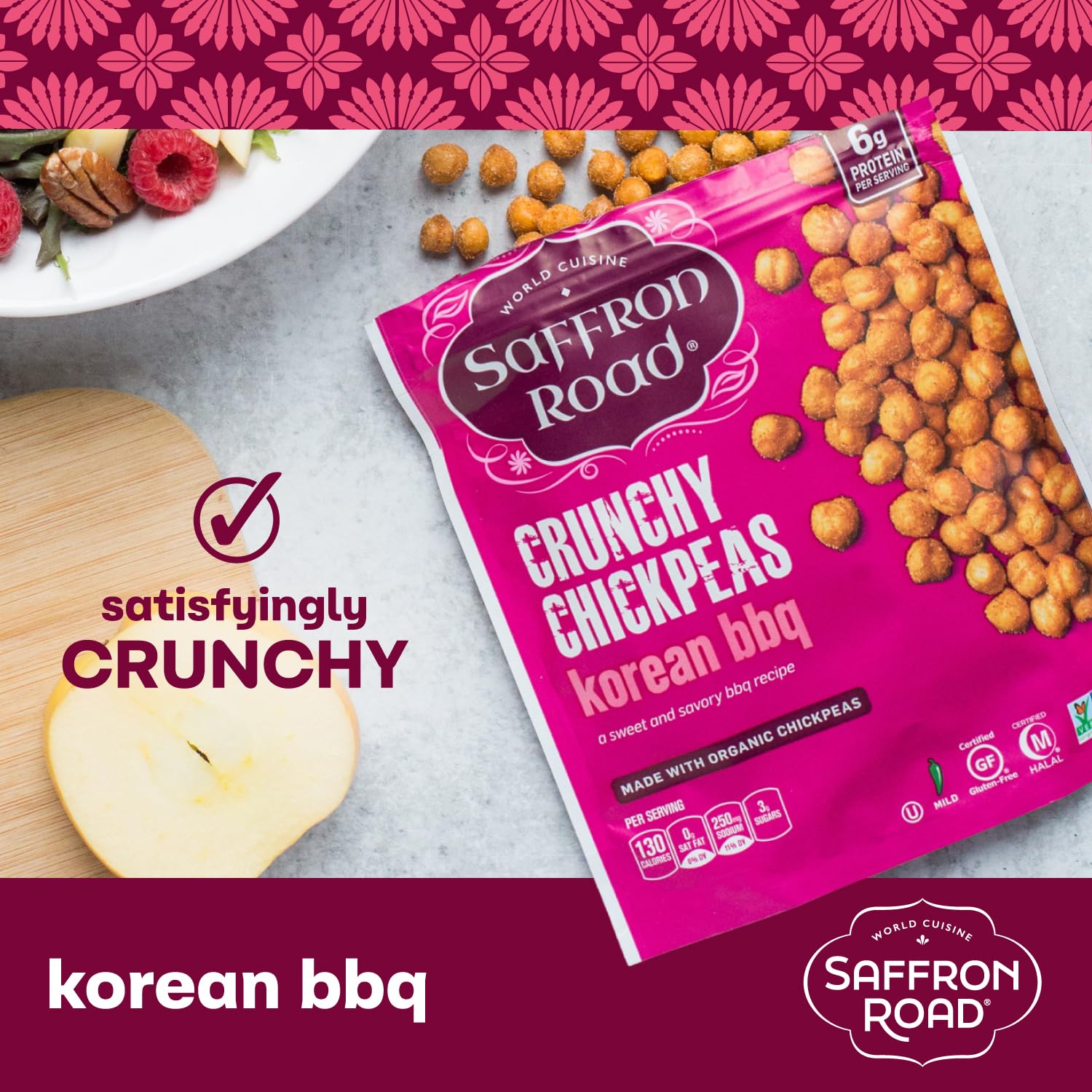 Saffron Road Roasted and Crunchy Korean BBQ Chickpeas | High Protein Snacks | Gluten-free, Vegan, Non-GMO, and Certified Halal a
