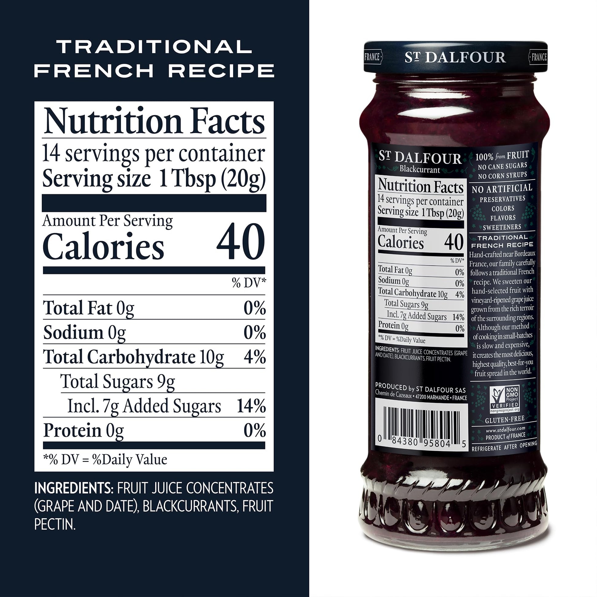 Savor The Exceptional Taste Of St Dalfour Blackcurrant French Fruit Spread, Meticulously Crafted In France To Deliver A Rich, Authentic Flavor Experience. Made With 100% Fruit, This Premium Spread Captures The Bold Essence Of Ripe Black Currants, Offering A Naturally Sweet And Tangy Delight In Every Bite. Free From Synthetic Nitrates Or Nitrites And Without Artificial Additives, This Spread Is A Pure And Wholesome Choice For Those Who Appreciate The Natural Goodness Of Fruit. Sweetened Solely With Fruit Juice Concentrates, It Delivers A Naturally Indulgent Sweetness Without Added Sugars. Perfect For Enhancing Your Favorite Breakfast Or Dessert, It Adds A Gourmet Touch To Any Meal. Sealed In A 10 Oz Jar To Preserve Its Fresh, Bold Flavor, This Spread Ensures Every Spoonful Is As Delightful As The First. Elevate Your Culinary Creations With The Refined Taste And Quality Of St Dalfour Blackcurrant French Fruit Spread, A True Testament To French Tradition And Expertise.