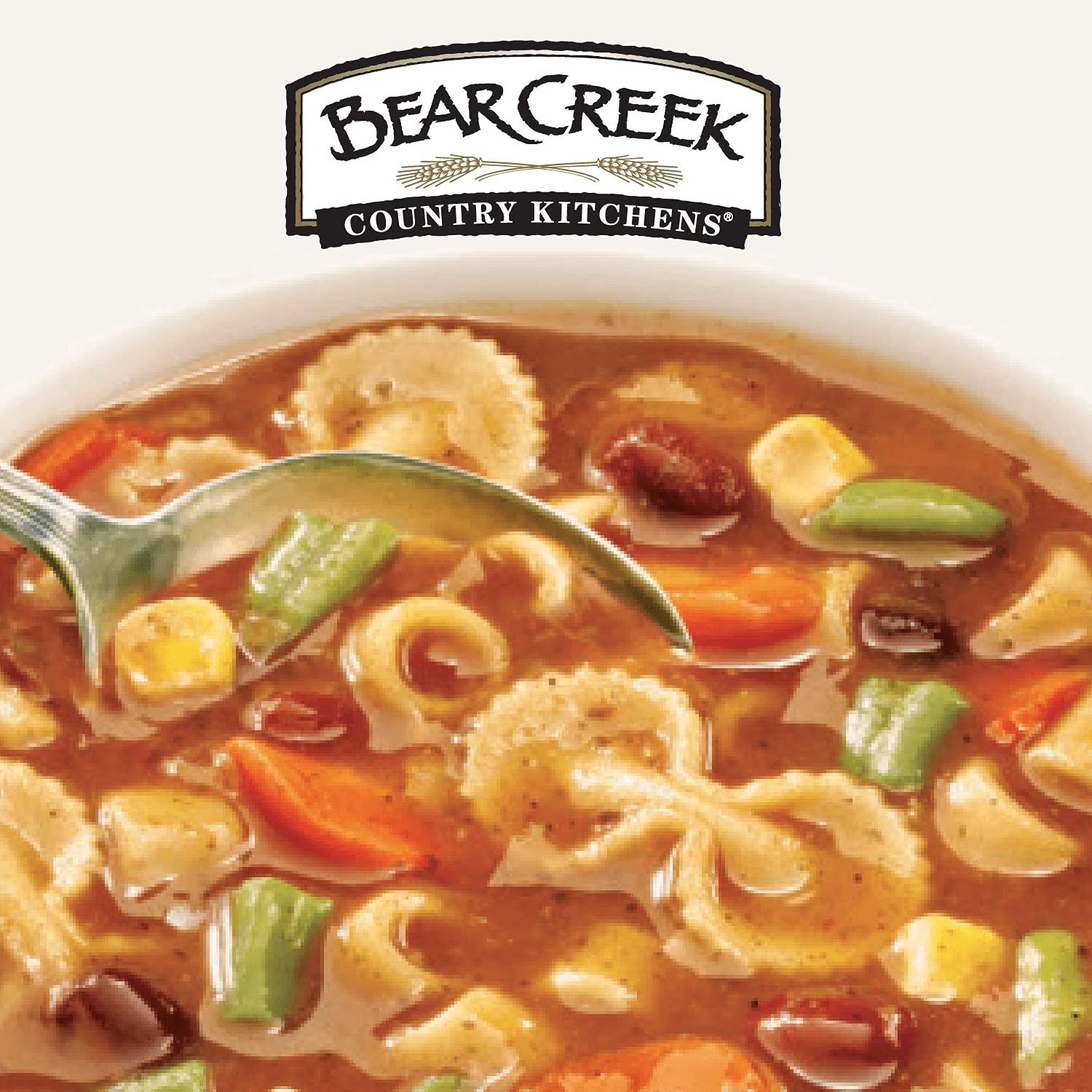 An award-winning Bear Creek soup, this hearty delight is chock-full of pasta and delicious veggies simmered in a rich beef stock. Try adding cooked ground beef and diced tomatoes for variety. Yields about 8 one-cup servings. Warm up a slow cooker full tonight. Makes 8 servings or 1/2 gallon. Just add water! In a few simple steps, you can serve ''homemade'' soups that will satisfy every appetite in 15 minutes. High in the Heber Valley of the Wasatch Mountains, Bear Creek Country Kitchens began with one goal in mind: Deliver great hearty homestyle dishes that the whole family will enjoy. Combining high quality hearty ingredients with our special blend of spices, our soups are delicious, yet easy to prepare. In just minutes you can serve ''homemade'' soups that will satisfy every appetite.