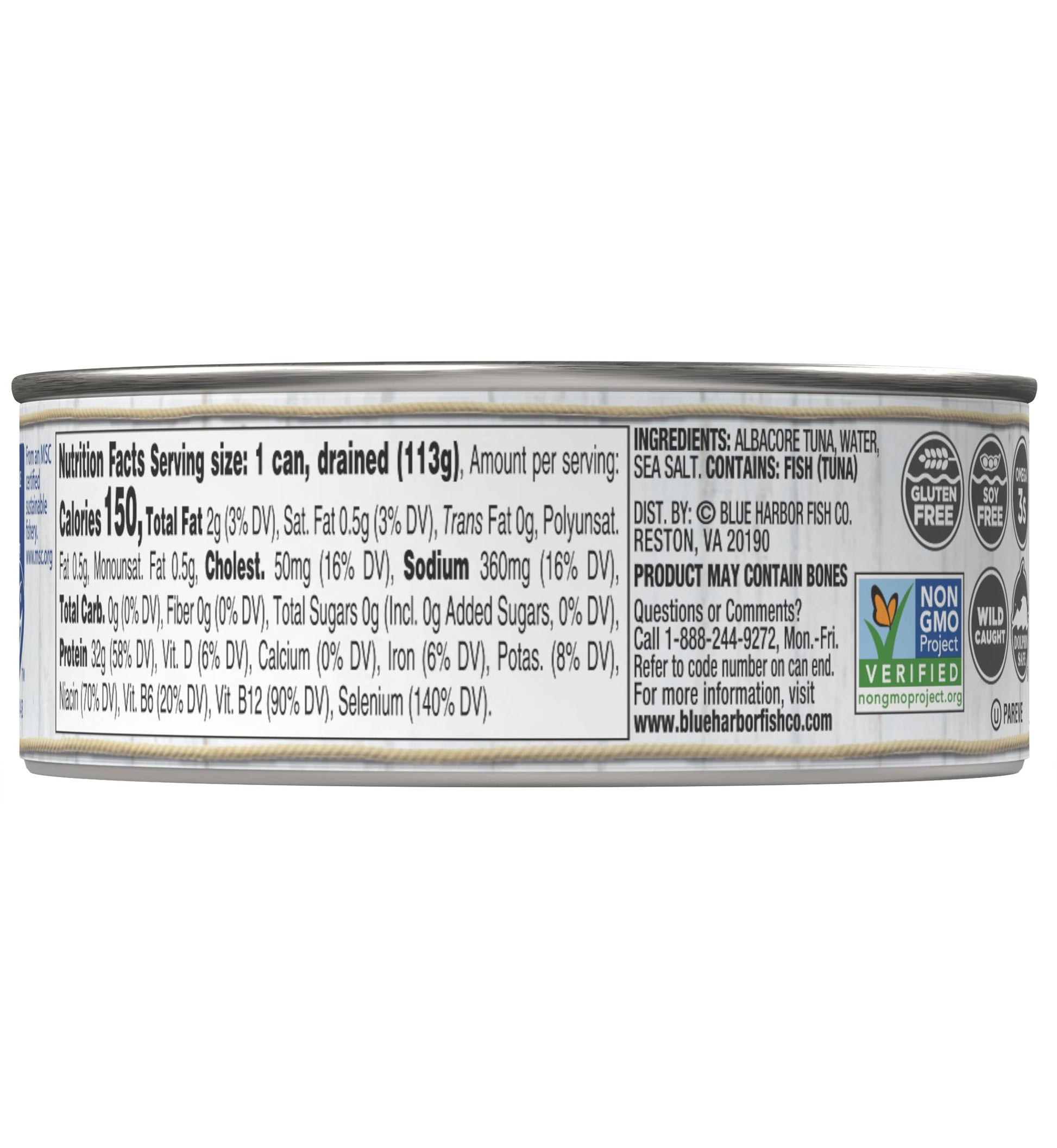 Blue Harbor Fish Co. Wild Albacore Solid White Tuna in Water with Sea Salt - 4.6 oz Can