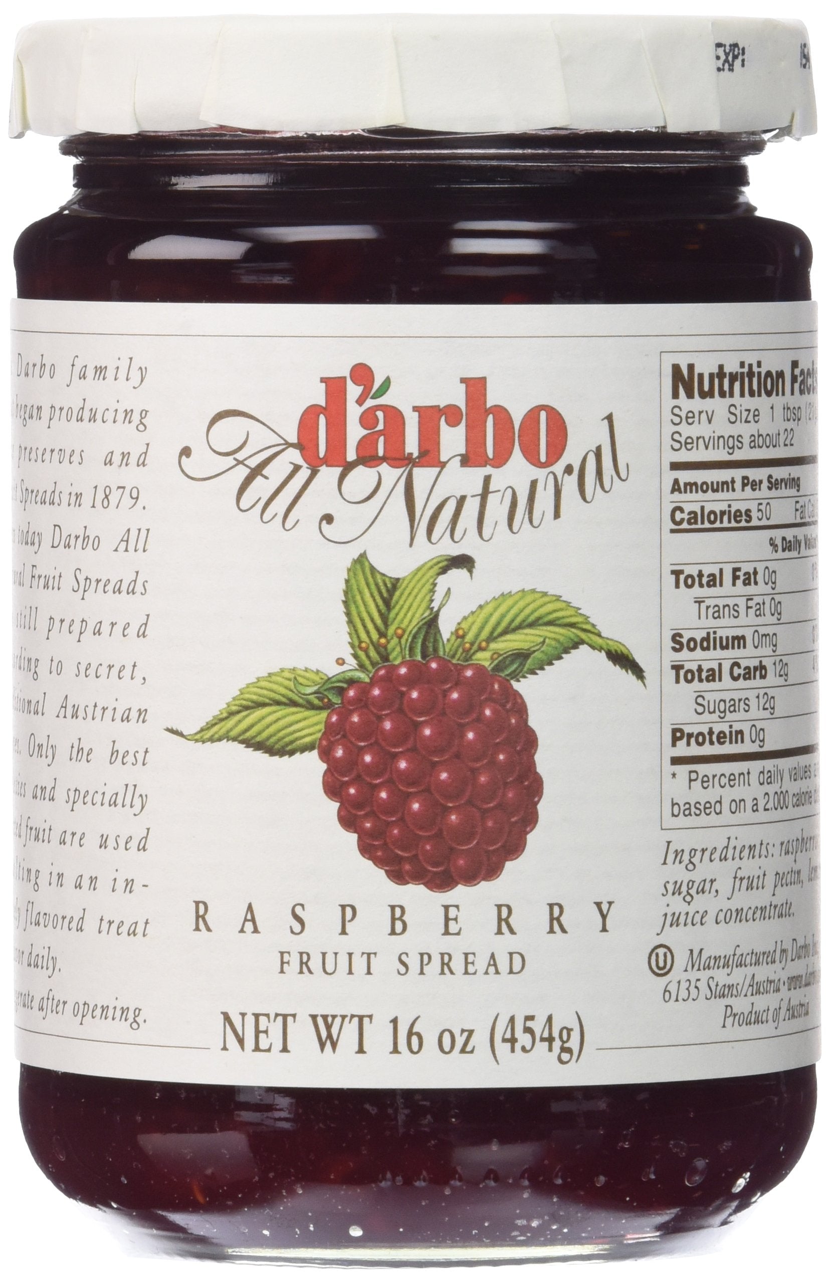 Q: What ingredients are in D’arbo All-Natural Raspberry Fruit Spread?A: D’arbo All-Natural Raspberry Fruit Spread is made from pure fruit with no artificial preservatives. The spread is crafted using only the best fruits and traditional recipes to ensure a naturally sweet and flavorful experience.