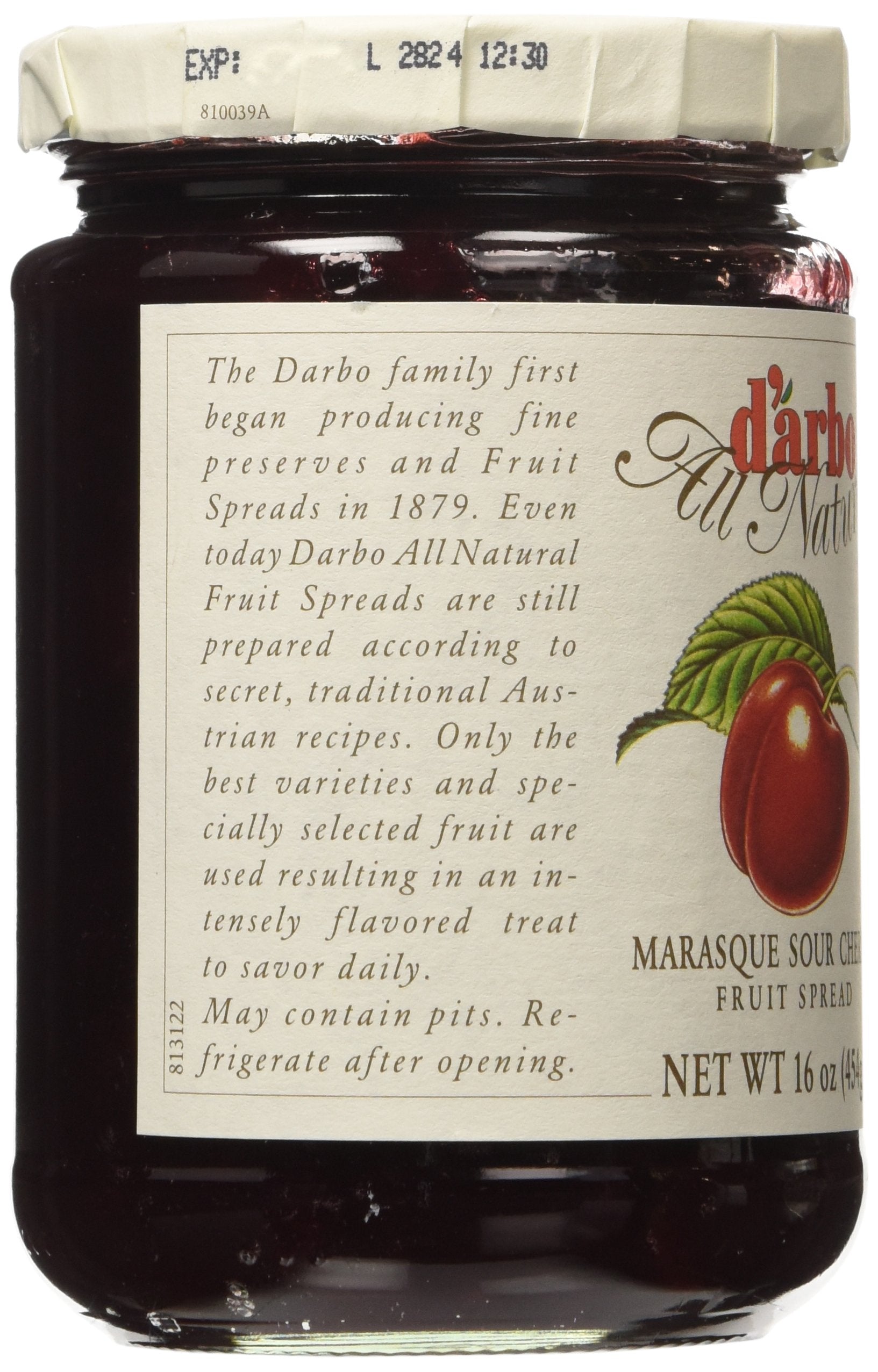 - Q: What are the main ingredients in D’arbo All-Natural Sour Cherry Fruit Spread? A: D’arbo All-Natural Sour Cherry Fruit Spread is made with hand-selected marasca sour cherries, sugar, pectin, and lemon juice concentrate, ensuring no artificial preservatives are included.