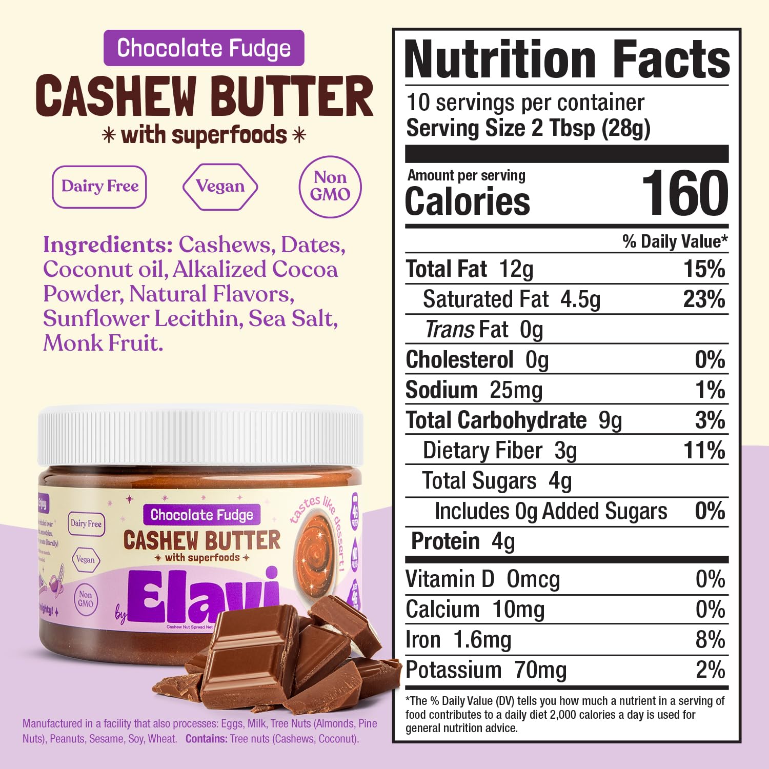 ELAVI Keto Cashew Butter Jar - Gut-Friendly, Low-Sugar Dessert Spread | Vegan, Kid-Friendly, No Added Sugar, No Stevia, No Sugar