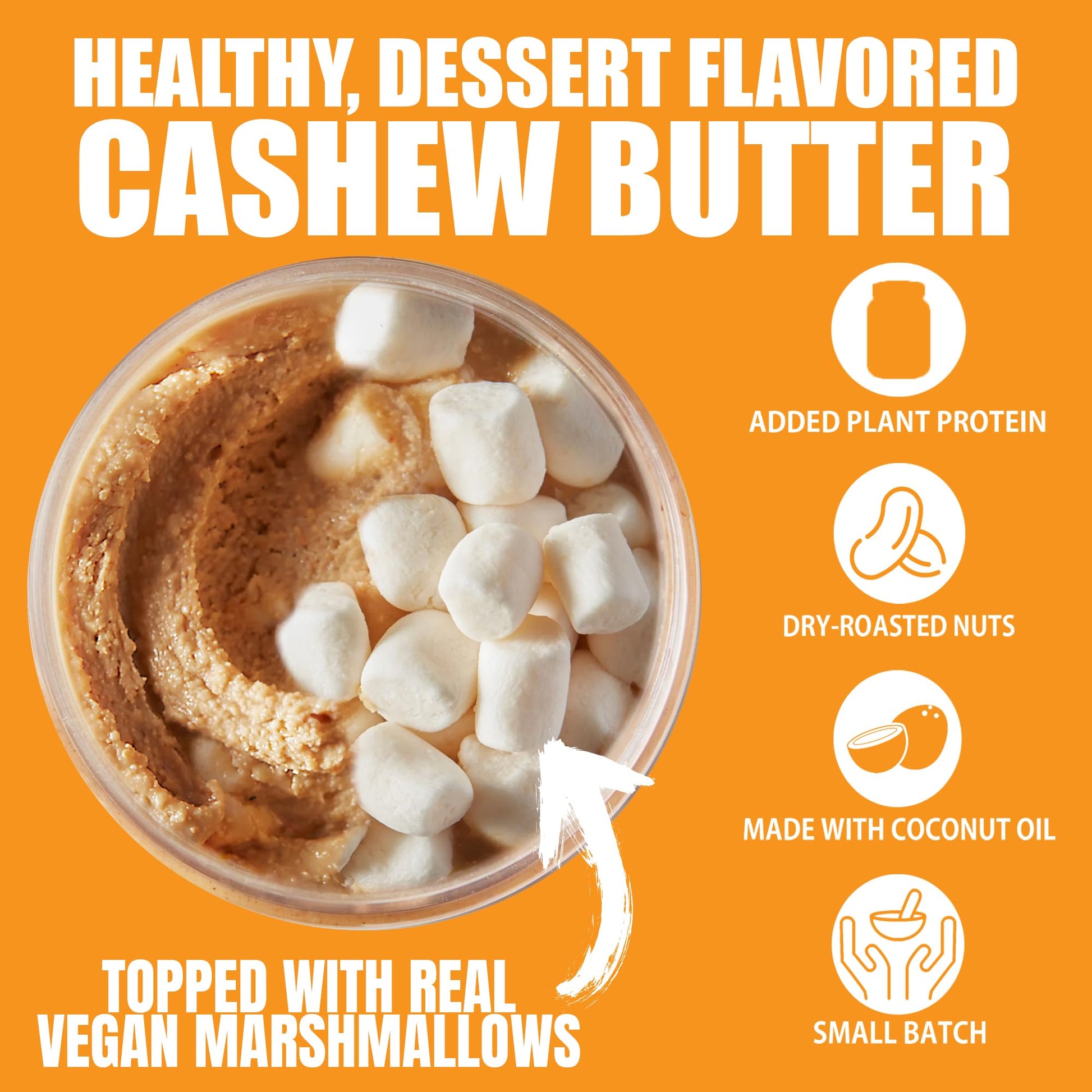 - Q: What are the main ingredients in Fit Butters Pumpkin Pie Cashew Butter Spread? A: Fit Butters Pumpkin Pie Cashew Butter Spread primarily consists of dry roasted cashews, coconut oil, vegan pumpkin pie flavored protein, and real vegan marshmallows. This combination provides a deliciously creamy texture and the rich flavor of pumpkin pie.