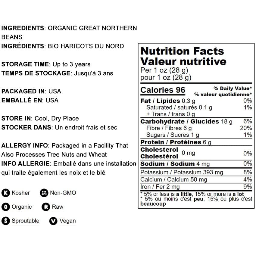 - Q: Are Food To Live Organic Great Northern Beans Non-GMO and Kosher? A: Yes, Food To Live Organic Great Northern Beans are Non-GMO and certified Kosher. This ensures that you are consuming a product that meets high safety and quality standards, making them a great choice for health-conscious consumers.
