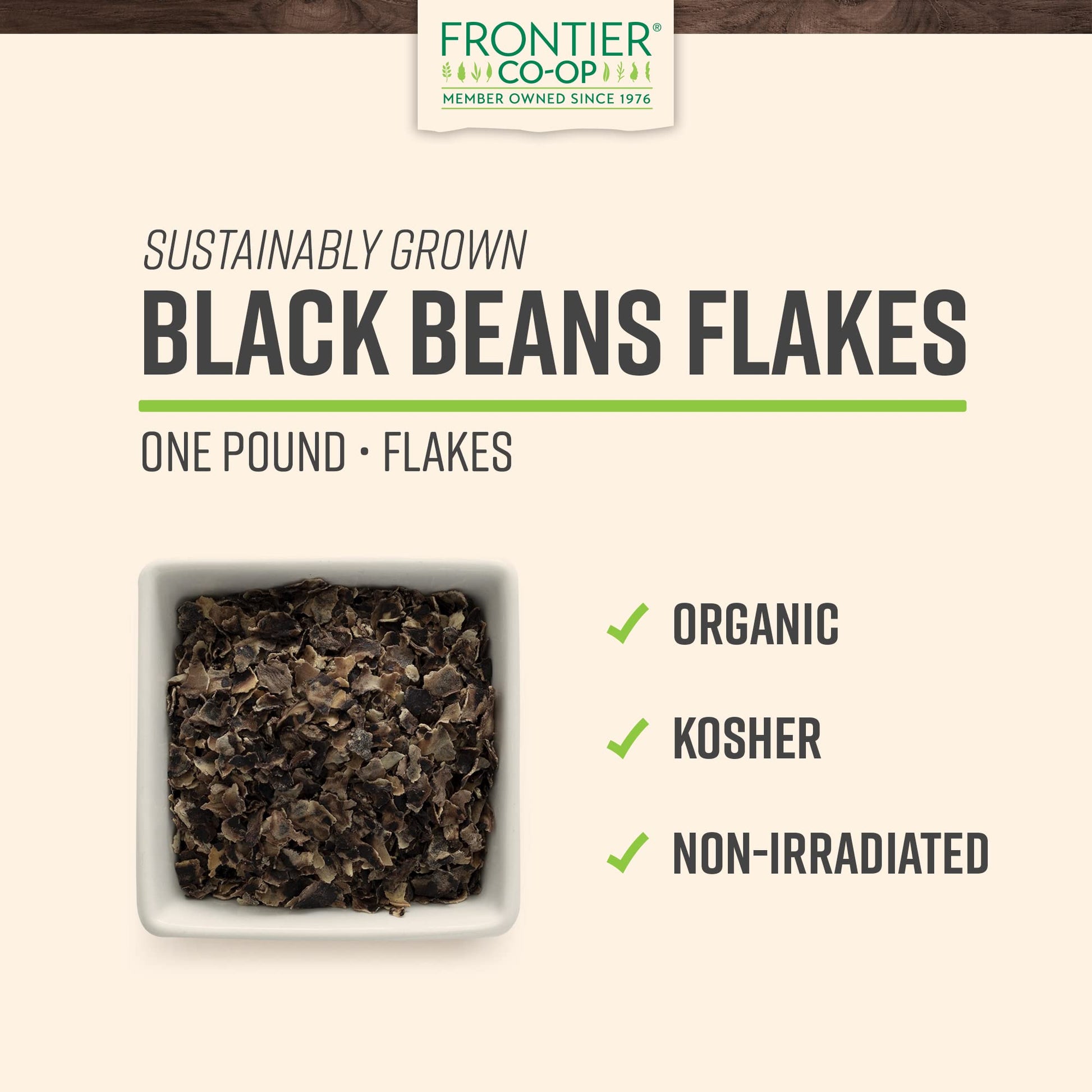 - Q: What nutritional benefits do black bean flakes offer? A: Frontier Co-op Organic Black Bean Flakes are rich in protein and fiber, making them a healthy meat alternative. They provide essential nutrients and can help support a balanced diet, particularly for those following vegan or vegetarian lifestyles.