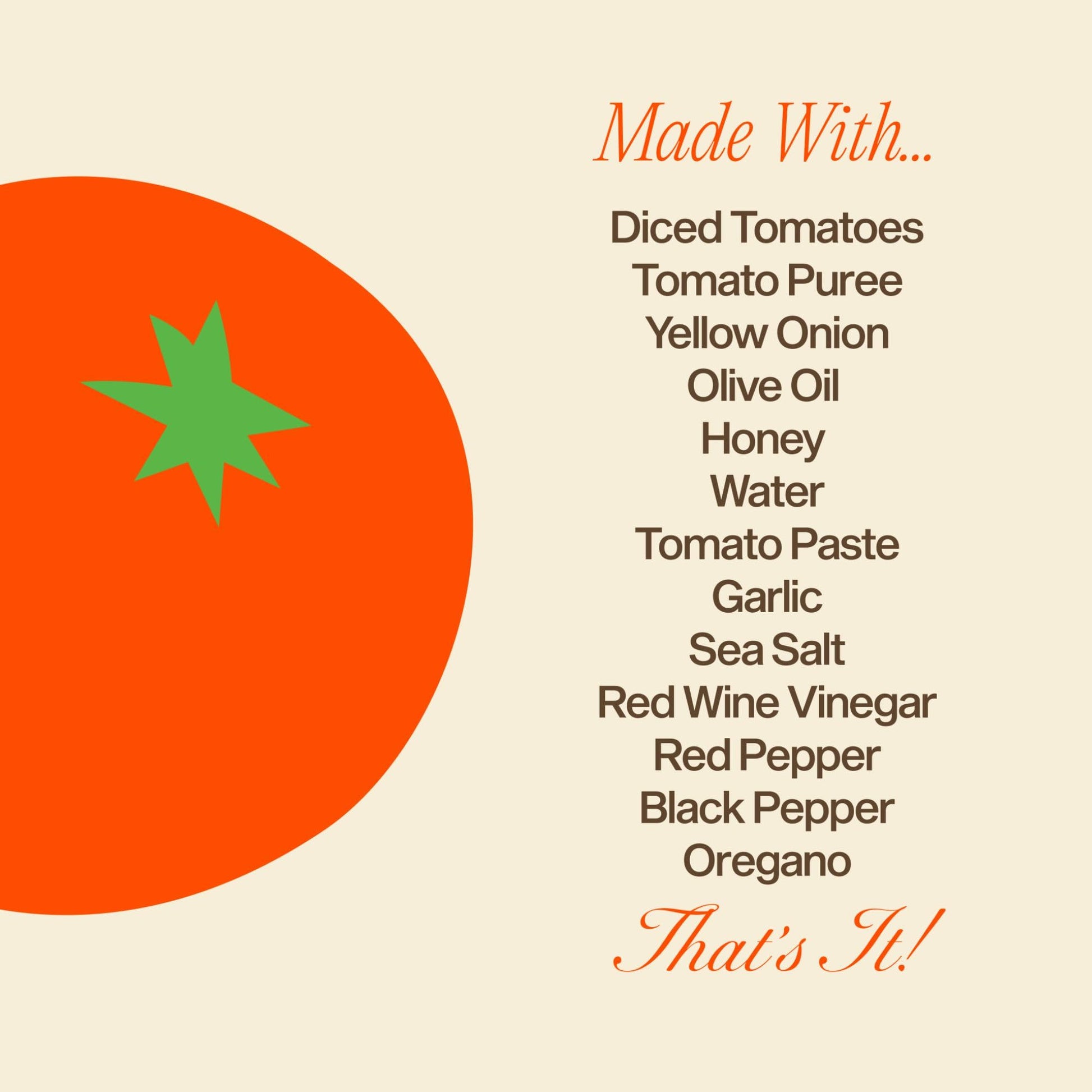 - Q: What ingredients are in Hot Honey Marinara Pasta Sauce? A: The sauce is made with clean, natural ingredients and does not contain preservatives, ensuring bold flavors without any artificial additives. Specific ingredient details can be found on the product label.