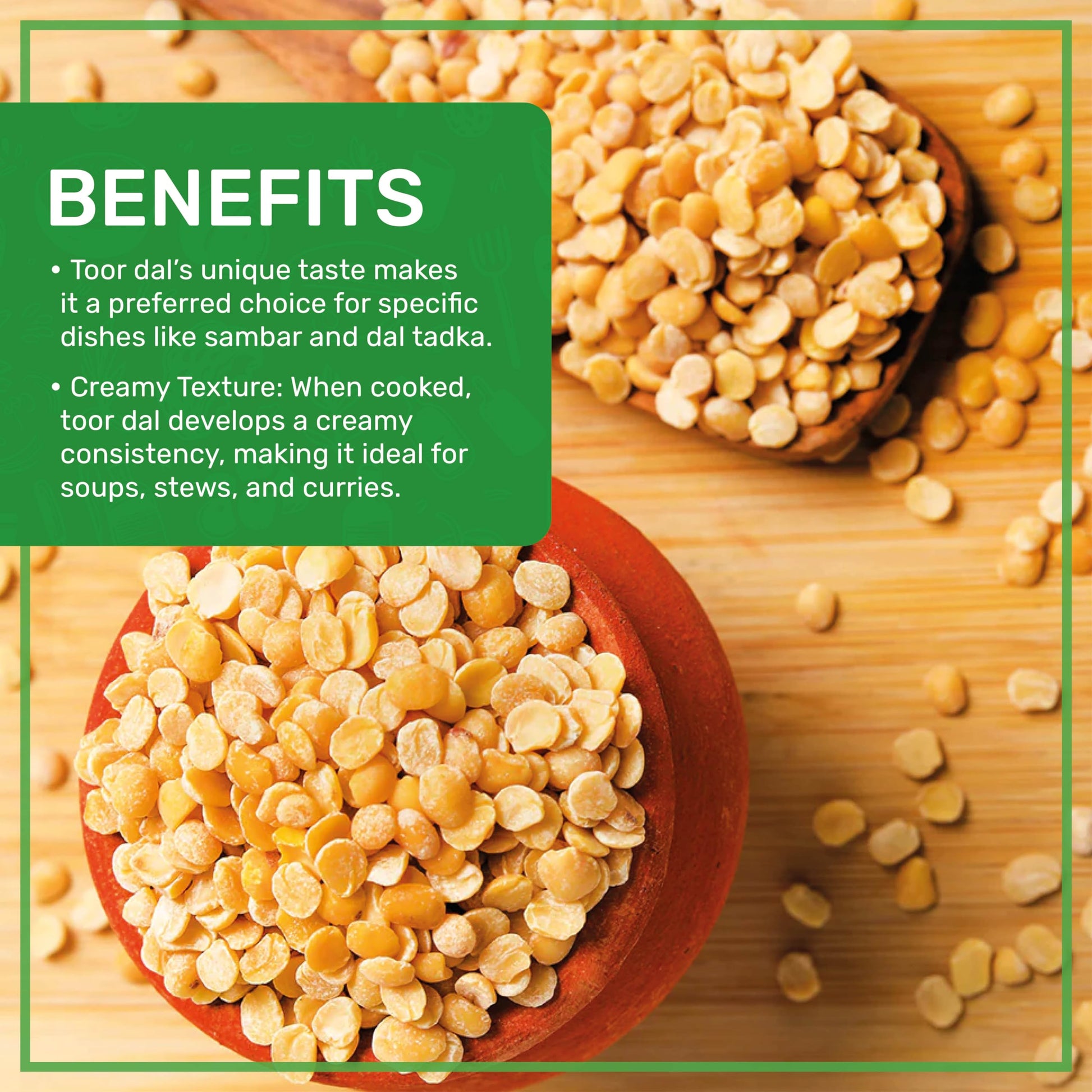 - Q: What dishes can I make with Toor Dal? A: Toor Dal is versatile and commonly used in South Indian cuisine. It is a key ingredient in Sambar, a spicy lentil and vegetable soup, and can also be used in dals, curries, and as a side dish with rice or roti.