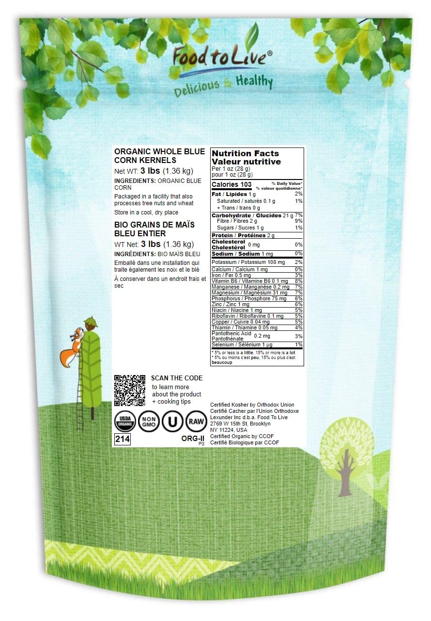 - Q: What is the best way to store organic blue corn kernels? A: To maintain freshness, store organic blue corn kernels in an airtight container in a cool, dry place. For longer shelf life, consider refrigerating or freezing the kernels.