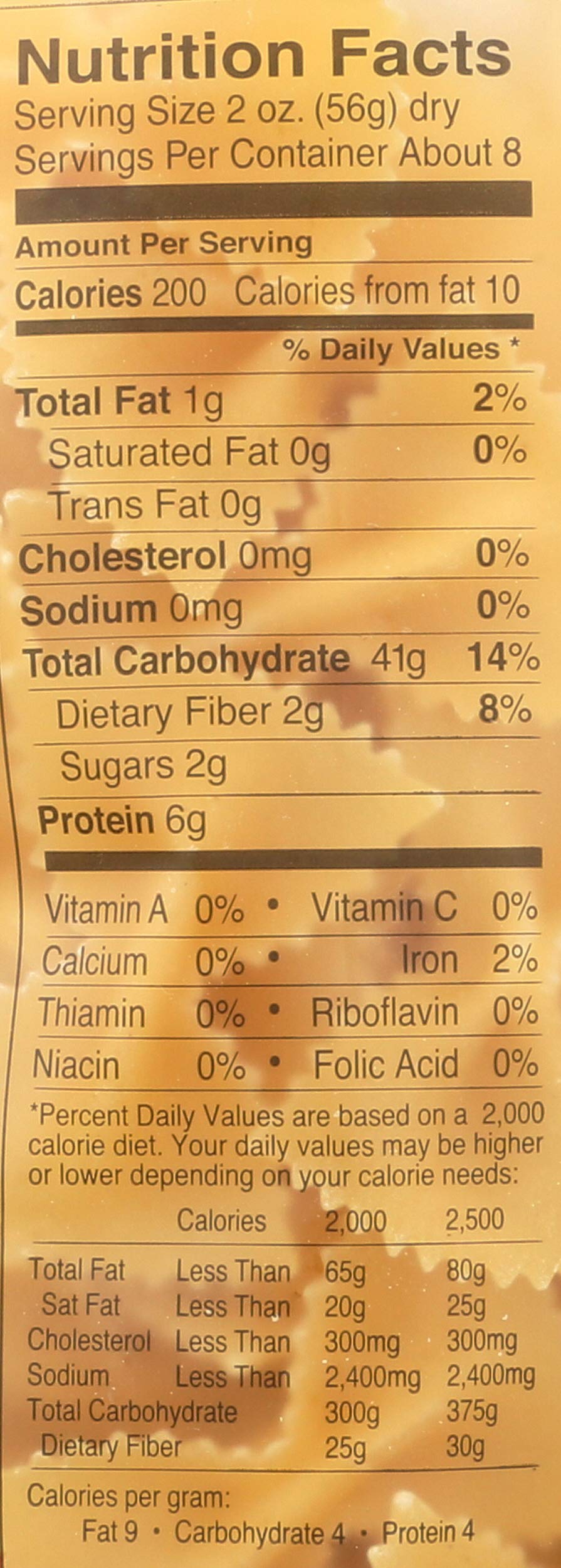 - Q: What allergens should I be aware of when consuming this pasta? A: Delallo organic farfalloni is made from wheat flour, which may contain gluten. Always check the nutrition facts panel on the packaging for detailed allergen information to ensure it meets your dietary needs.