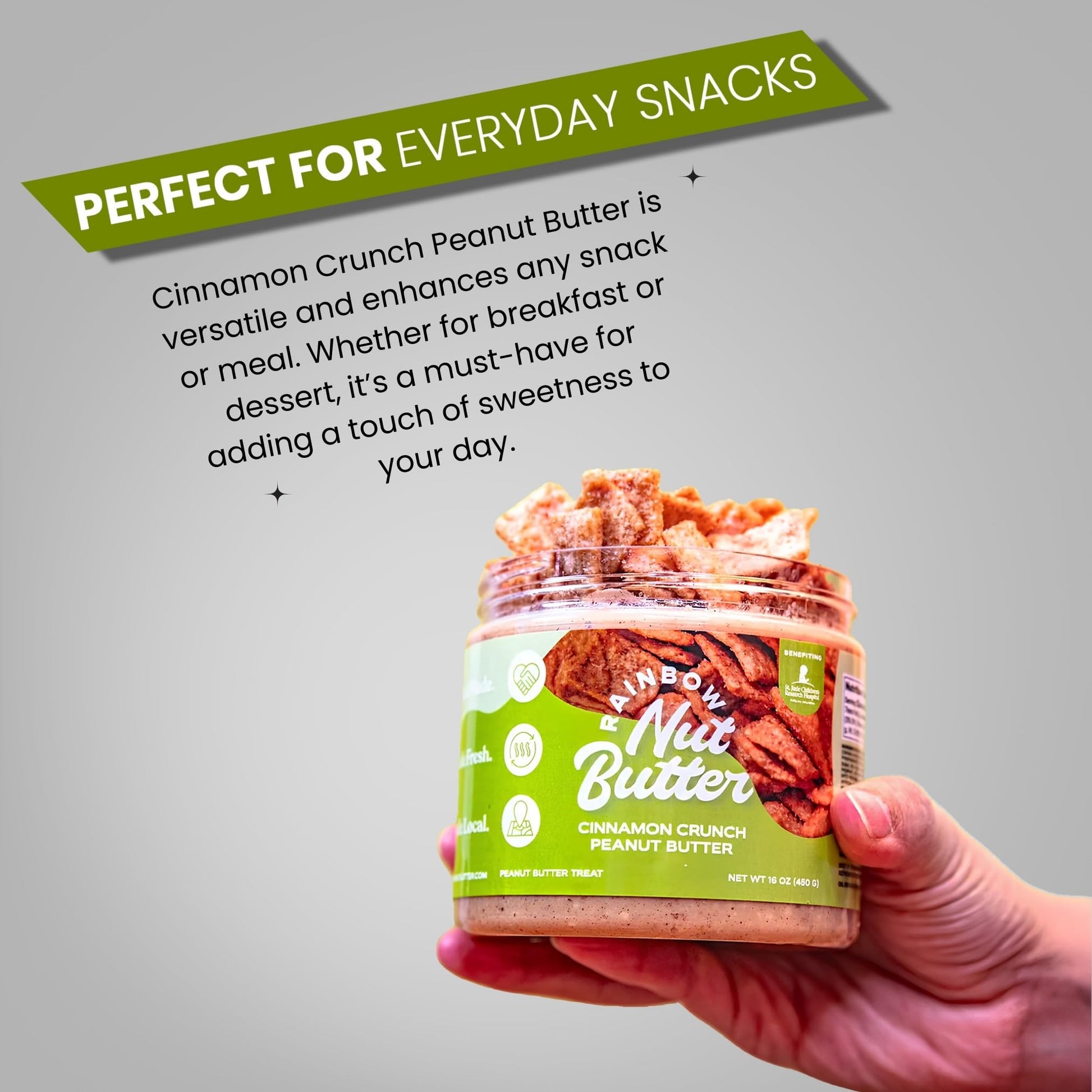 - Q: How can I use Cinnamon Crunch Peanut Butter in my meals or snacks? A: Cinnamon Crunch Peanut Butter is versatile and can be used in various ways. Spread it on toast, mix it into oatmeal or yogurt, drizzle it over pancakes, or enjoy it directly from the jar for a delightful treat at any time of the day.