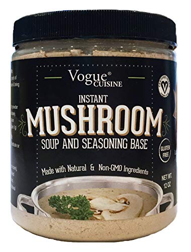 - Q: What is Vogue Cuisine Mushroom Soup & Seasoning Base used for? A: Vogue Cuisine Mushroom Soup & Seasoning Base is a versatile product that can be used to create instant mushroom soup, season meats, vegetables, pasta, tofu, yogurt, grains, and beans. It serves as a hearty broth for soups and marinades, making it a perfect addition to many recipes.