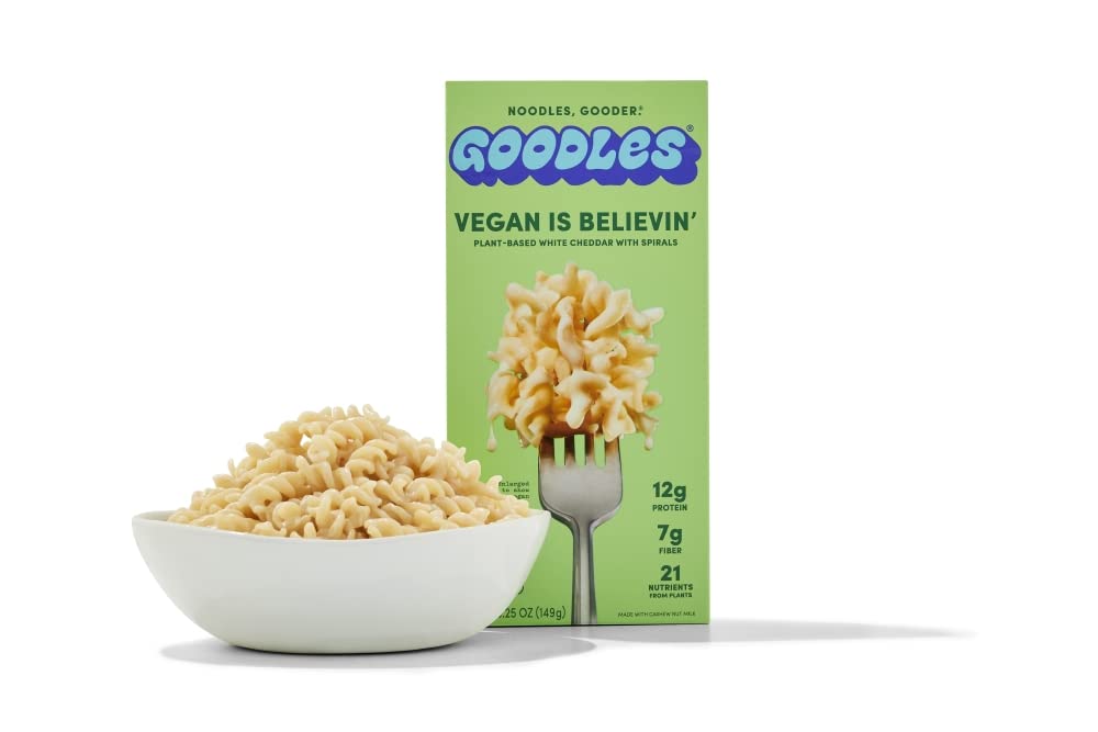Q: Is Goodles Vegan Is Believin’ Mac & Cheese suitable for a gluten-free diet?A: Goodles Vegan Is Believin’ Mac & Cheese is not specifically labeled as gluten-free. It is important to check the packaging for allergen information if you have gluten sensitivities.