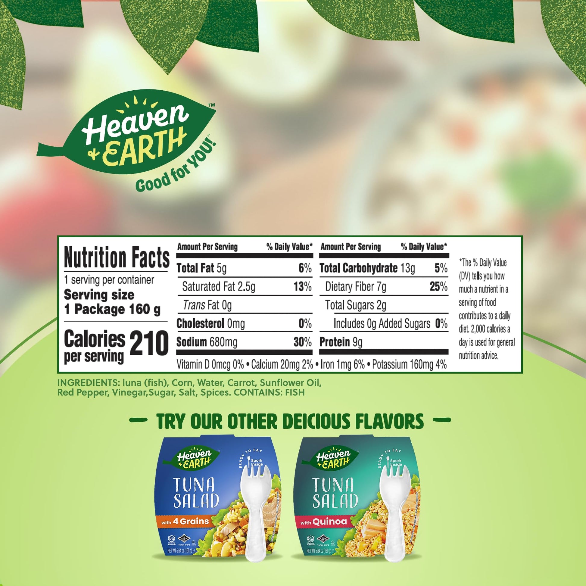 View compareHeaven & Earth Ready to Eat Tuna Salad with Corn & Vegetables, 5.64oz (4 Pack) | Great Source of Protein | Travel Friendly Meals