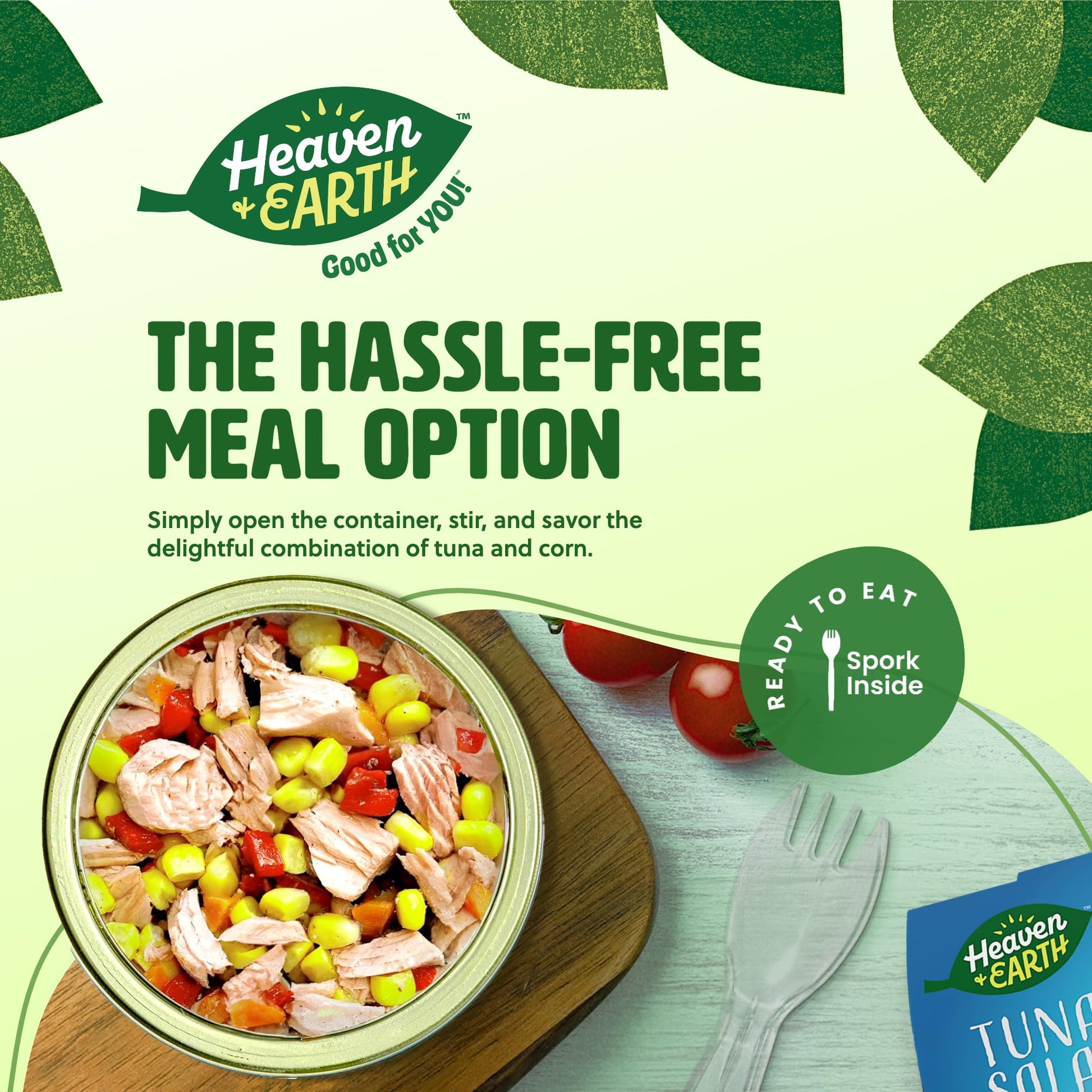 Heaven & Earth Ready to Eat Tuna Salad with Corn & Vegetables, 5.64oz (4 Pack) | Great Source of Protein | Travel Friendly Meals