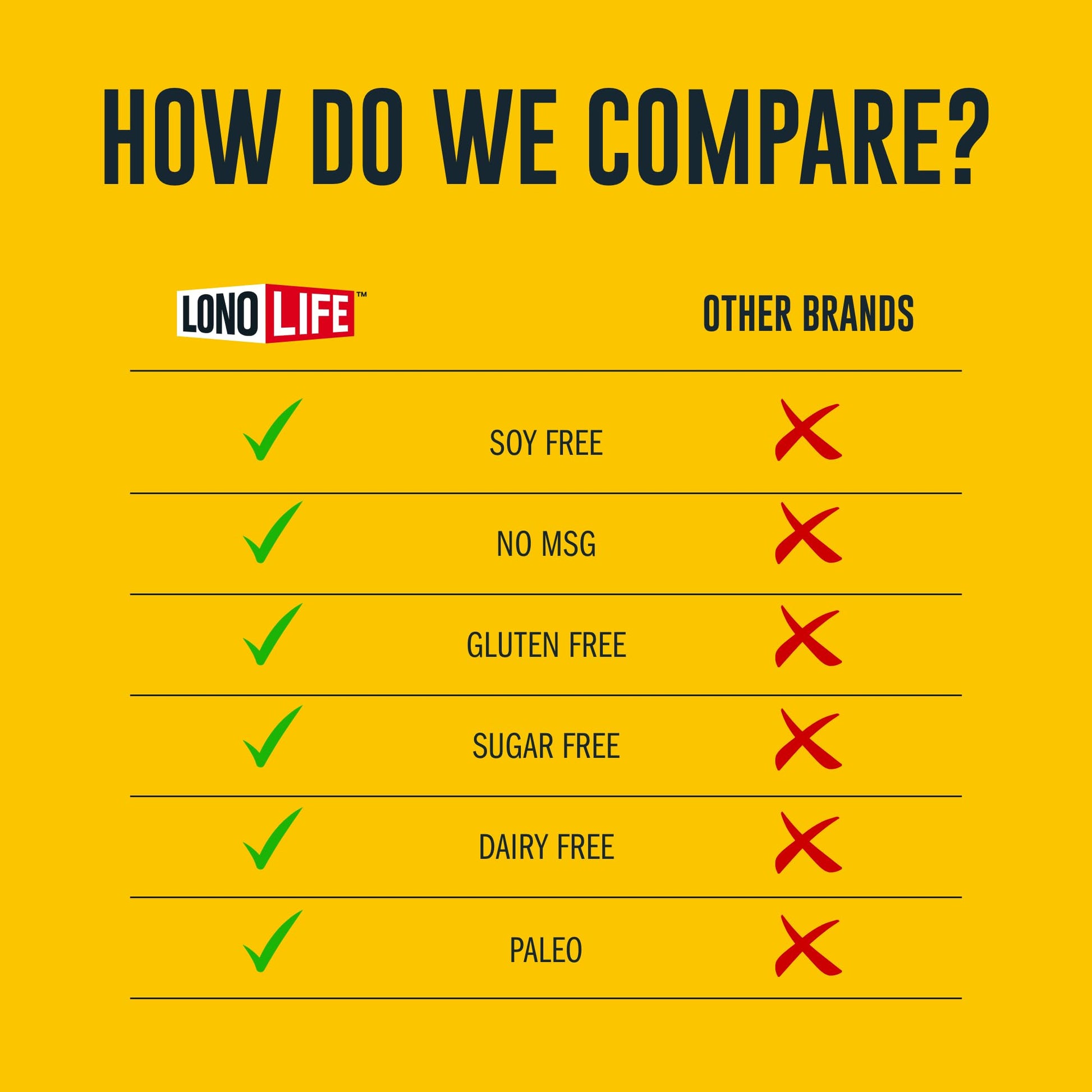 - Q: What ingredients are in LonoLife Low Sodium Beef Bone Broth Powder? A: LonoLife Low Sodium Beef Bone Broth Powder contains high-quality ingredients, including beef collagen, chicory root, beef, sea salt, yeast extract, natural flavors, and a blend of spices. It is free from artificial colors, sweeteners, and preservatives.