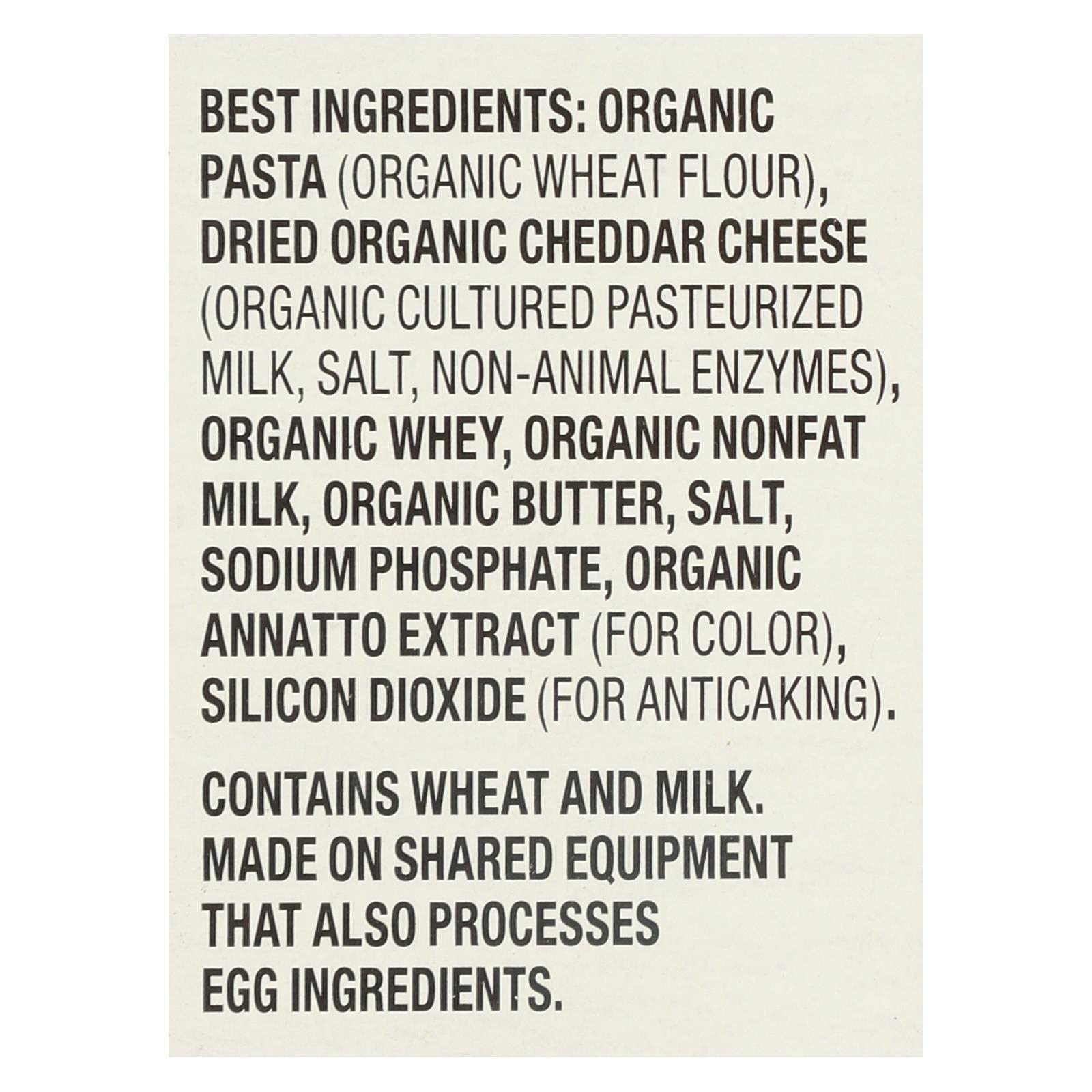 - Q: What is the shelf life of the Organic Classic Macaroni and Cheese? A: The Organic Classic Macaroni and Cheese has a long shelf life due to its packaging. For best results, check the expiration date on the box and store it in a cool, dry place.