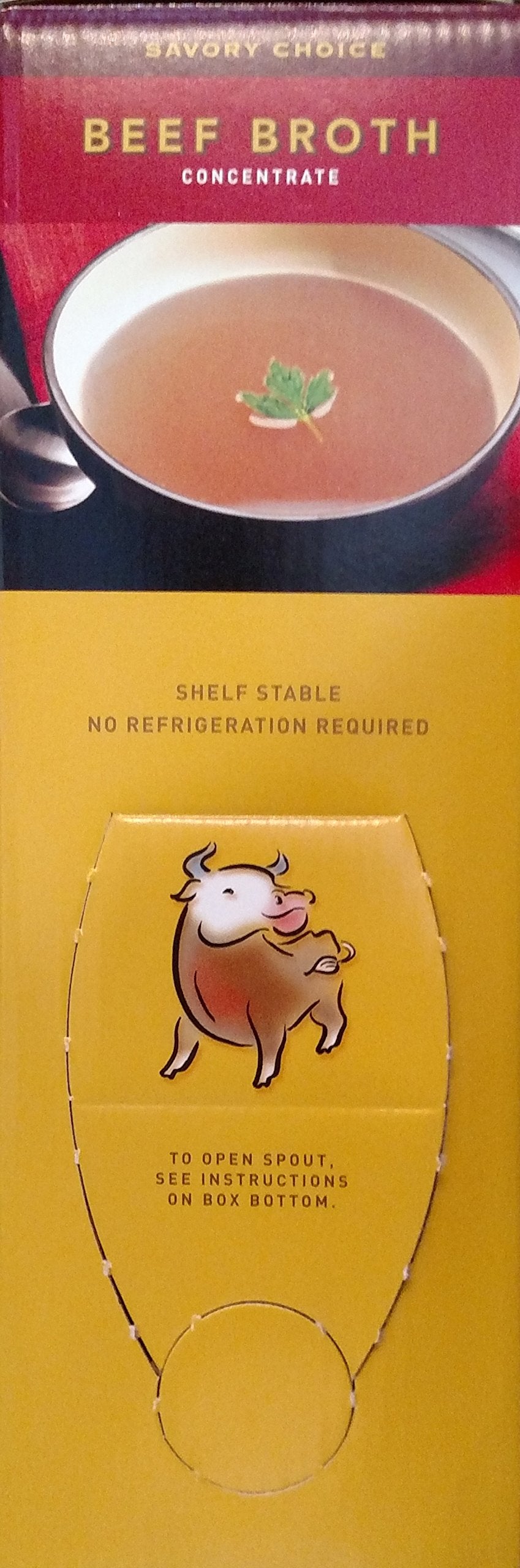 - Q: What are the package dimensions of this beef broth concentrate? A: The Savory Choice Beef Broth Concentrate comes in a package with dimensions of 30.48 cm in length, 26.67 cm in width, and 10.16 cm in height, making it easy to store in your kitchen.